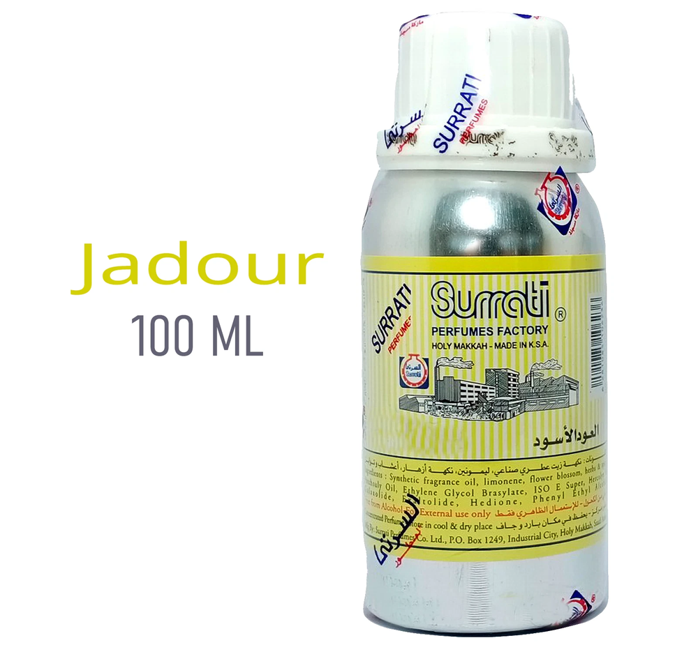 Type: Perfume Oil gtin13: Does Not Apply Expiration Date: Comes With Latest Expiry Date Size Type: Regular Size Volume: 100 ml Scent: Jadour Formulation: Oil UPC: Does Not Apply MPN: NA Country of Origin: India Fragrance Name: Jadour Features: Alcohol-Free, All Natural Ingredients, Concentrated, Long Lasting Brand: Surrati California Prop 65 Warning: NR