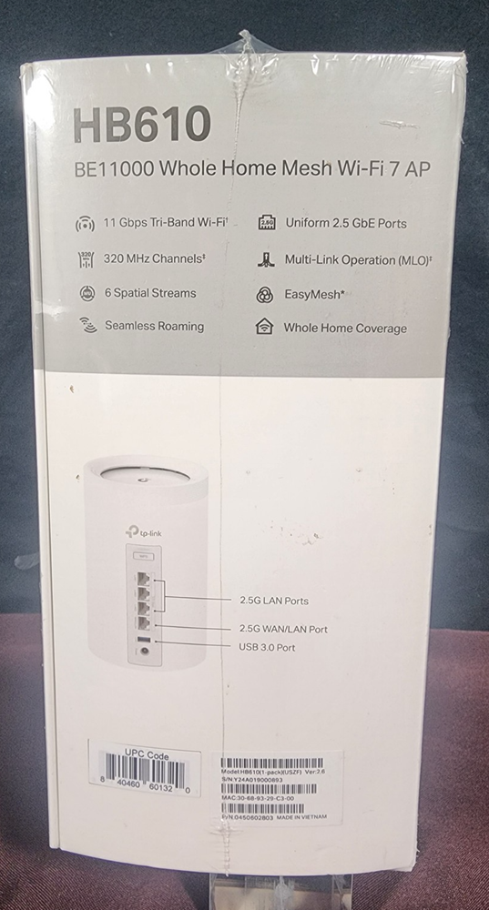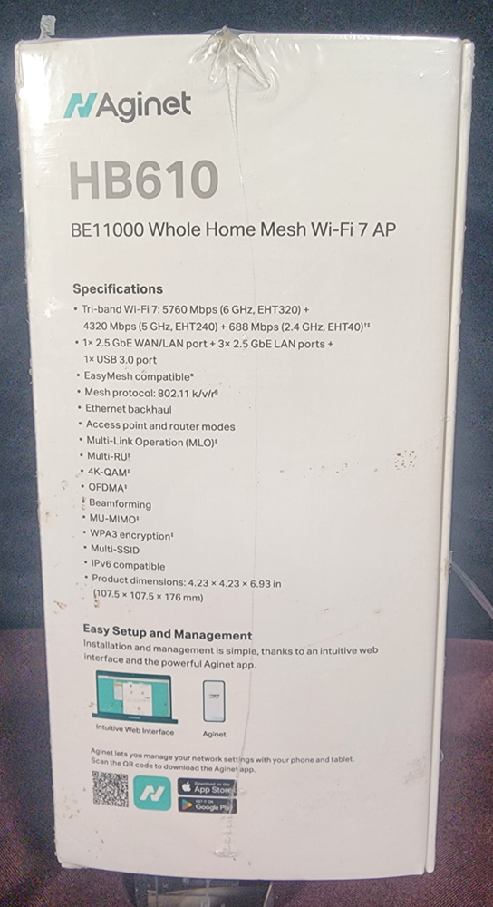 TP-Link BE11000 HB610 Aginet Whole Home Tri Band Mesh Wi-Fi 7 AP Single Pack Original factory seal has some damage. Please see all photos for condition of the seal.