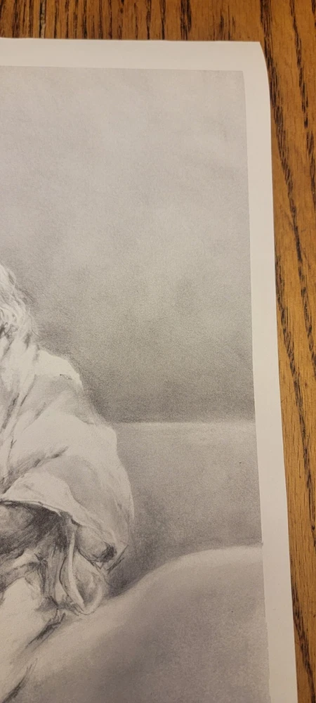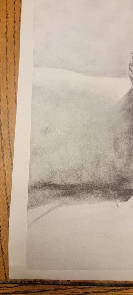 This beautiful print by Dee Toscano depicts a Taos Indian Native American deep in thought. Created in 1973, this charcoal sketch on paper measures 12 inches in height and 18 inches in length. The print is unframed and is a reprint of the original. The piece showcases traditional Taos culture and the beauty of the American Indian. It is a great addition to any art collection and is perfect for those who appreciate contemporary art produced in the 1970s. This print is a medium-sized piece. It is printed on high-quality paper and is a great representation of the Taos people. See pictures for details