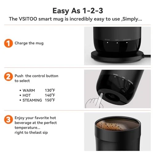 Menu 1. We require immediate payment. 2. We currently accept payment via eBay managed payments only. 3. Once payment is cleared, we will dispatch your shipment within 1-3 business days. Please refer to the "Shipping" tab for more information regarding shipping speed to your destination. Temperature Control Travel Mug, Heated Mug, Rechargeable Coffee Warmer, LED Light (15 oz Black) Product description [Temperature Adjustment] The powered heated travel mug gives you full control of your drink's temperature. You can adjust it via the mug's bottom button or the app. When fully charged, it keeps your drink hot for 2 hours, and with the new coaster, for a whole day. Set your ideal temperature within (130 - 150℉; 55 - 66℃) for the perfect sip. [Longer Lasting Battery] Mug Meet all your hot beverage needs with this remarkable battery - powered self heating coffee mug. Equipped with a built - in battery pack, it maintains the perfect temperature for coffee,tea,hot chocolate,chai,cider,mulled wine, and more.Take this innovative heated smart coffee mug anyw you go. [Dual Function Insulation] Unlike traditional camping mugs,this smart coffee mug features double - vacuum insulation. This advanced design not only keeps your hot drinks hot with its intelligent heating system for that perfect morning coffee or tea but also keeps your cold beverages cold even on sweltering summer days. Enjoy your favorite drinks at the optimal temperature all year round. App-Controlled] Effortlessly pair this temperature control smart heating travel mug with the app. Customize your preferred temperature settings and create personalized presets to suit your taste.Button Control: For quick and easy access, the self heating thermal mug can also be directly controlled by a simple button press. Get your hot coffee in no time, hassle - free. [Perfect Gift] These self warming mug are typically compatible with the car's power supply.They can be connected to the car's other power outlets via a dedicated car charger data cable,providing a stable power source for heating. The cups even have anti-spill designs to prevent coffee from spilling due to the car's movement. It makes a great gift for your loved ones on Mother's Day, Father's Day, Christmas, birthdays. PLEASE MESSAGE US IF YOU HAVE ANY OTHER QUESTIONS, AND MANY THANKS FOR READING ALL OF THIS. Copyright ©#. All Rights Reserved.