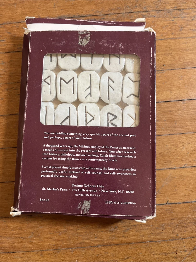 Item Length:7.5 in.Country/Region of Manufacture:United StatesNumber of Pages:127ISBN:9780312089993Personalize:NoItem Width:5.25 in.Publication Year:1984Language:EnglishPersonalized:NoGenre:FantasyFormat:HardcoverEra:1980sIntended Audience:AdultsInscribed:NoAuthor:Ralph H. BlumEdition:SecondPublisher:St. Martin's Pressgtin13:9780312089993Original Language:EnglishFeatures:IllustratedItem Weight:19 oz.Topic:BooksSigned:NoEx Libris:NoBook Title:Book of Runes : a Handbook for the Use of an Ancient Oracle: the Viking RunesVintage:Yes