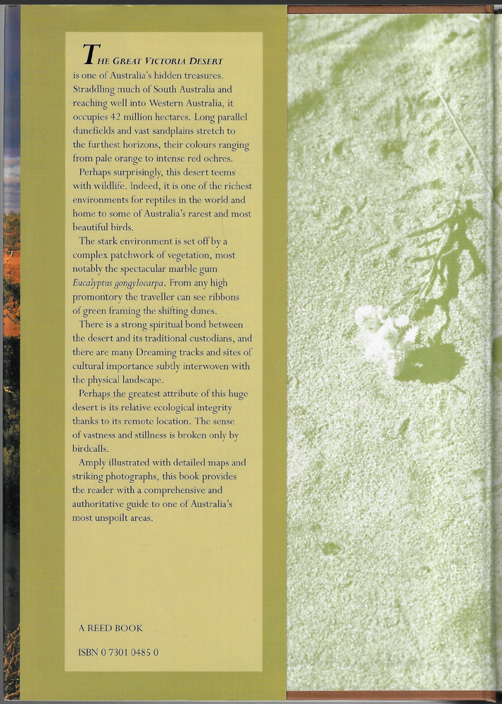 The Great Victoria Desert ; by Mark Shephard - Hardcover Book The Great Victoria Desert ; by Mark Shephard - Hardcover Book This copy is in VERY GOOD+ used condition overall. The dust-jacket has light marks and wear. The boards and binding are in excellent order. The pages DO NOT have any names, inscriptions or marking of text. Click here to visit PATRICK ANDREAS QUALITY BOOKS Store Home Page . Listing and template services provided by inkFrog