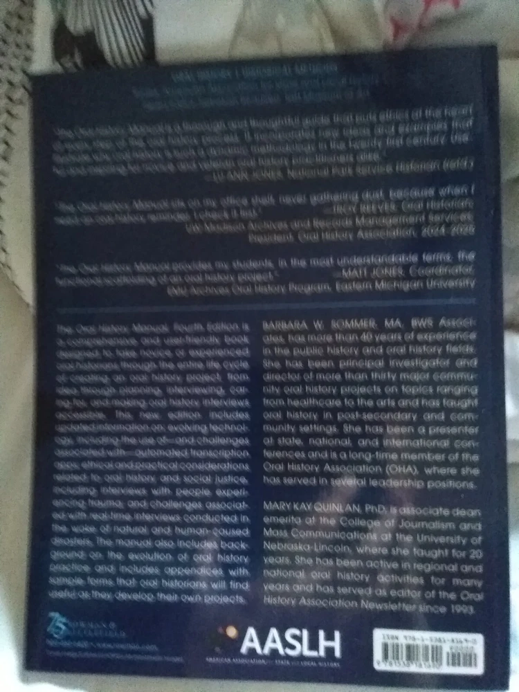 Number of Pages: 240 Pages Item Length: 11 in Item Weight: 15.7 Oz Item Height: 0.7 in Publisher: Rowman & Littlefield Publishers, Incorporated Type: Textbook Language: English Series: American Association for State and Local History Ser. Country/Region of Manufacture: United States Author: Barbara W. Sommer, Mary Kay Quinlan Format: Trade Paperback gtin13: 9781538181690 Subject: Museum Administration & Museology ISBN: 9781538181690 Publication Name: Oral History Manual Subject Area: Business & Economics, History Publication Year: 2024 Item Width: 8.5 in Features: Illustrated