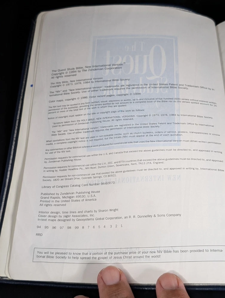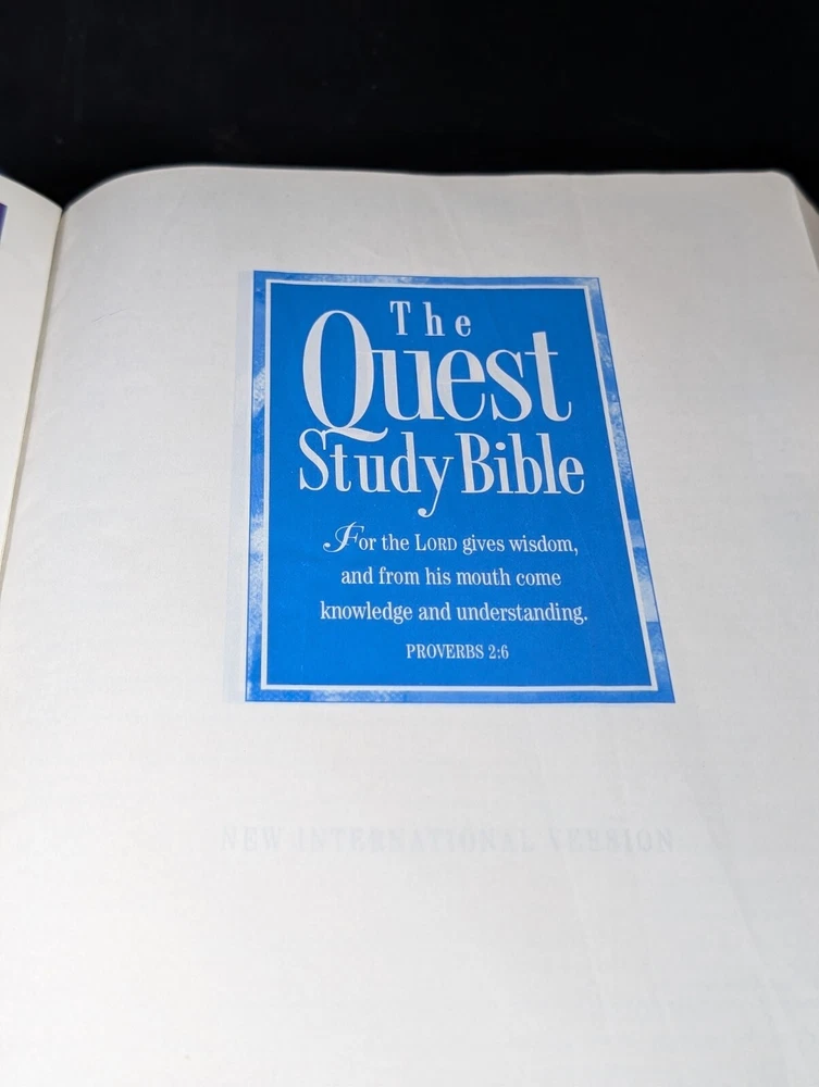 Book Series: Bible Features: Leather Bound Book Title: Quest Study Bibles Item Length: 9.75 in Signed: No Original Language: English Genre: Bibles Author: God Format: Genuine Leather Item Width: 6.5 in ISBN: Does not apply Publisher: Zondervan Language: English Publication Year: 1994 Topic: General Type: Bibles gtin13: Does not apply Narrative Type: Nonfiction Country/Region of Manufacture: United States Intended Audience: Young Adults, Adults Item Height: 2 in Edition: International Edition