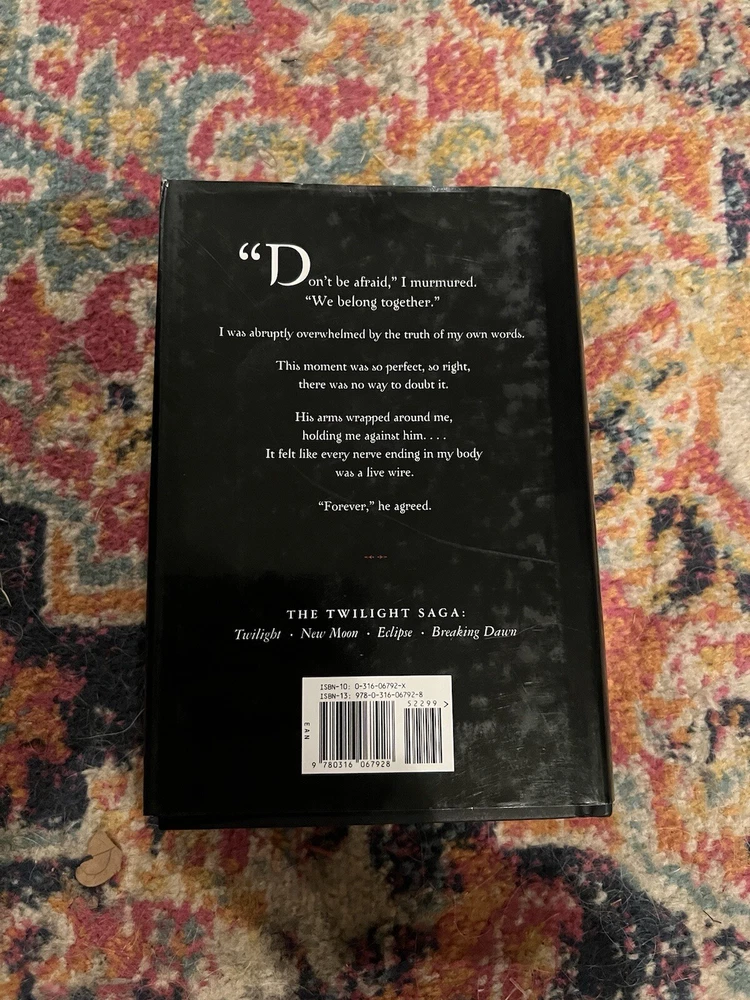 This is a hardcover copy of "Breaking Dawn" by Stephenie Meyer, the 5th book in the "Twilight Saga Ser." This novel is part of the young adult fiction and juvenile fiction genres, with a focus on romance, paranormal, occult & supernatural, family & marriage & divorce, social themes like dating & sex, and vampires. The book has 768 pages, is 8.6 inches long, 6 inches wide, and 2.5 inches high, with a weight of 29.7 ounces. It was published by Little, Brown Books for Young Readers in 2008 and is written in English. This first edition novel is perfect for both young adults and adults who enjoy the "Twilight Saga Ser."