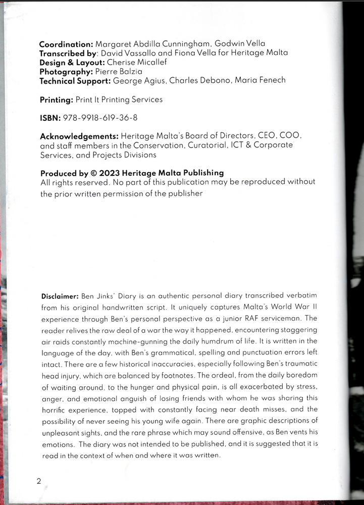 The War in Malta as I Saw It ; by Ben Jinks - Hardcover Book The War in Malta as I Saw It ; by Ben Jinks - Hardcover Book This copy is in VERY GOOD+ used condition overall. No dustjacket, as issued. The printed boards and binding are in excellent order. The pages DO NOT have any names, inscriptions or marking of text. Click here to visit PATRICK ANDREAS QUALITY BOOKS Store Home Page . Listing and template services provided by inkFrog