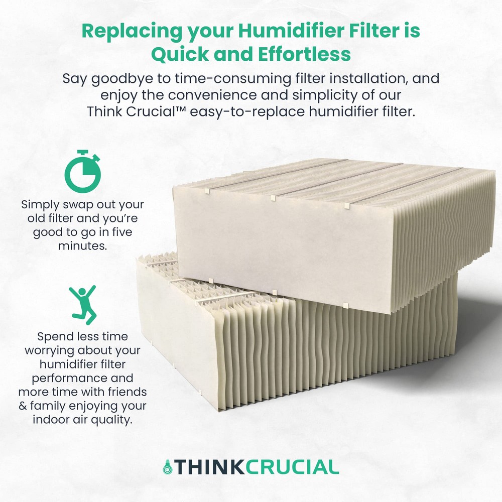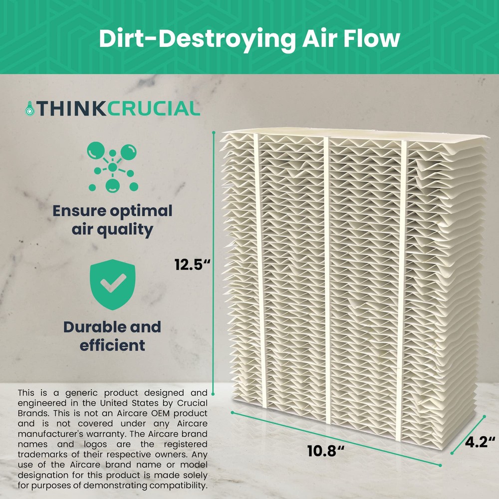 2 PACK OF AIRCARE AIR FILTER REPLACEMENTS by Think Crucial. Premium replacement air filter parts for Aircare air filters. Pair Replacements for part 1043 models Spacesaver 800, 8000 Series. CLEAN AND HEALTHY LIFESTYLE: Replacing Aircare console models and humidifiers filter are easy to clean. Our replacement humidifier filter parts ensure quality air for your residential and commercial space. SIMPLE AND EASY TO INSTALL: Switch out in less than five (5) minutes, providing time efficiency. Great filters for the Aircare Spacesaver 800, 8000 Series Console. Get back to daily activity quickly and make a big difference with air quality in the process. Simply remove the older and dirty filter and replace. LONG LASTING REPLACEMENT HUMIDIFIER FILTER: Washable, reusable filters are the perfect replacement every 6 to 12 months. Use for optimal performance or three (3) to four (4) times per year depending upon usage. When an air purifier has a super clogged or dirty air filter, it can cause it to work harder and impact utility bills. THINK CRUCIAL manufactures premium quality air filter replacement parts and stands behind the quality and workmanship of all our products.