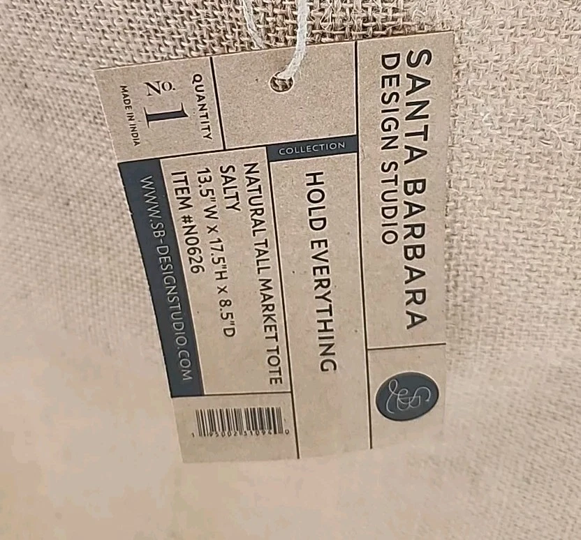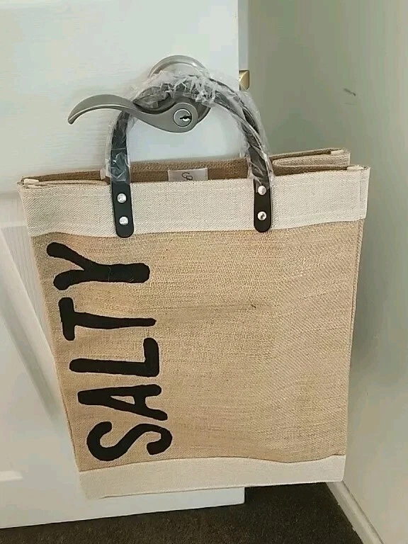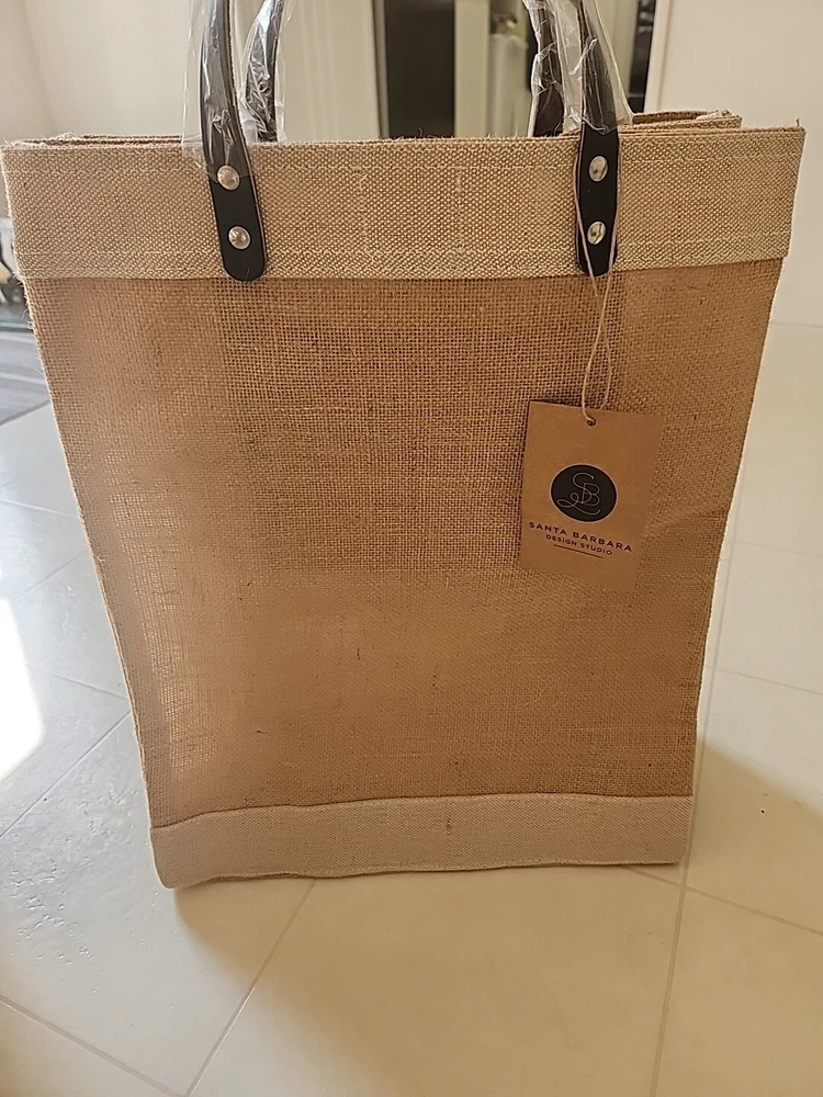 Tote "Salty"Beach FarmerMarket (Santa Barbara )Jute Leather Handles 18x14x9