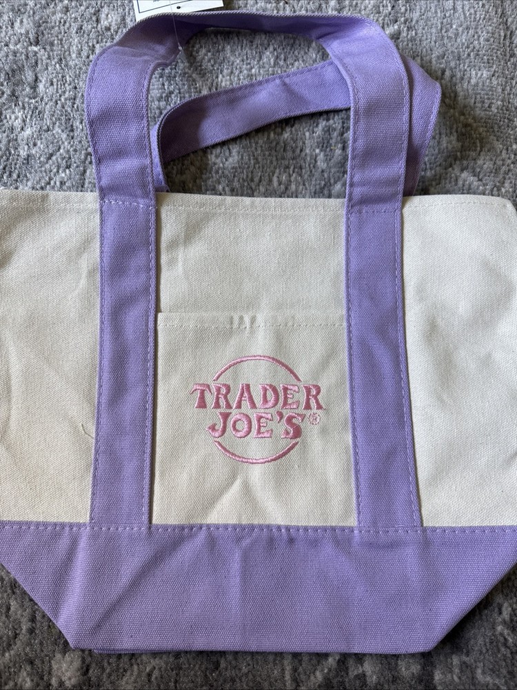 NEW TRADER JOE'S MINI CANVAS TOTE BAG LAVENDER PURPLE. Condition is New with tags. Shipped with USPS Ground Advantage.