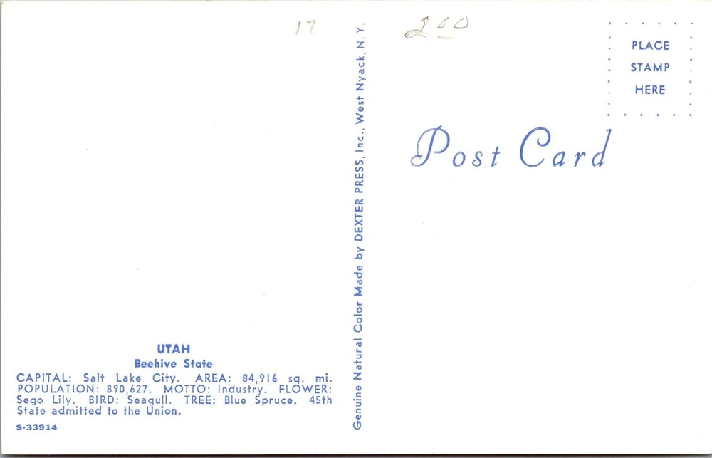 Unit of Sale: Single Unit City: Utah Era: Chrome Postage Condition: See Image Original/Licensed Reprint: Original Region: Utah Subject: Cities & Towns Country/Region of Manufacture: Unknown Theme: Cities & Towns Type: Printed (Lithograph) Country: USA