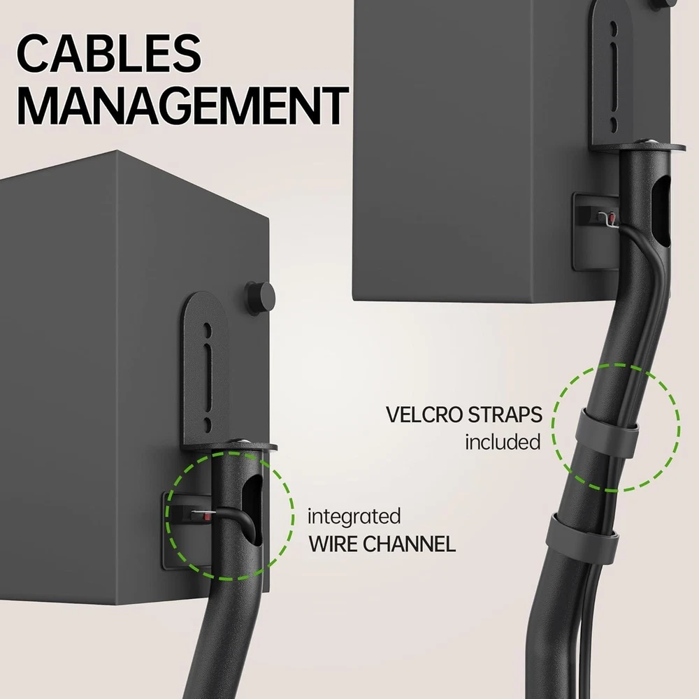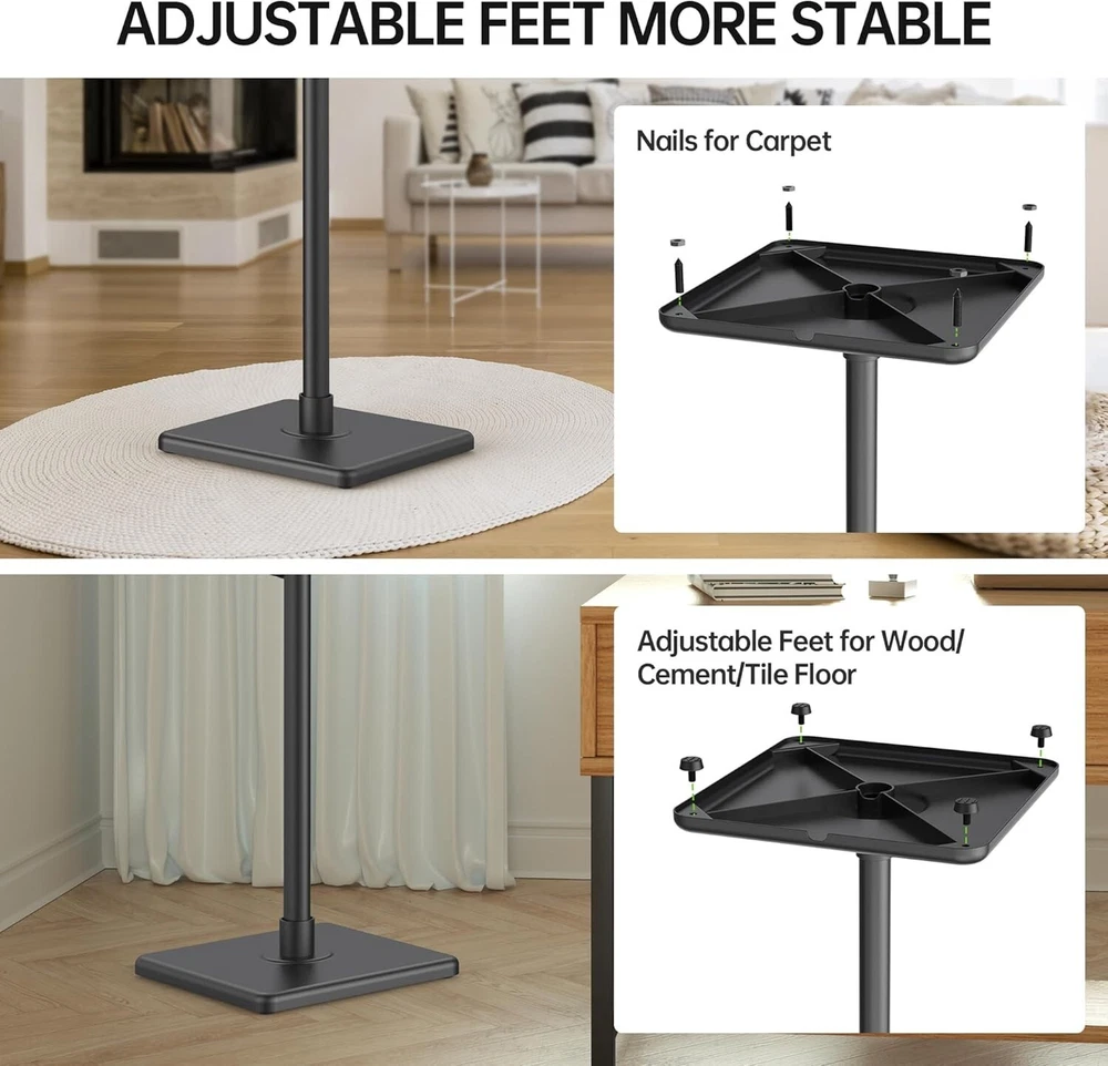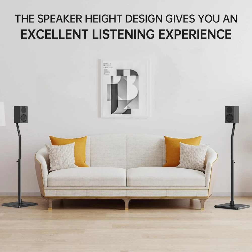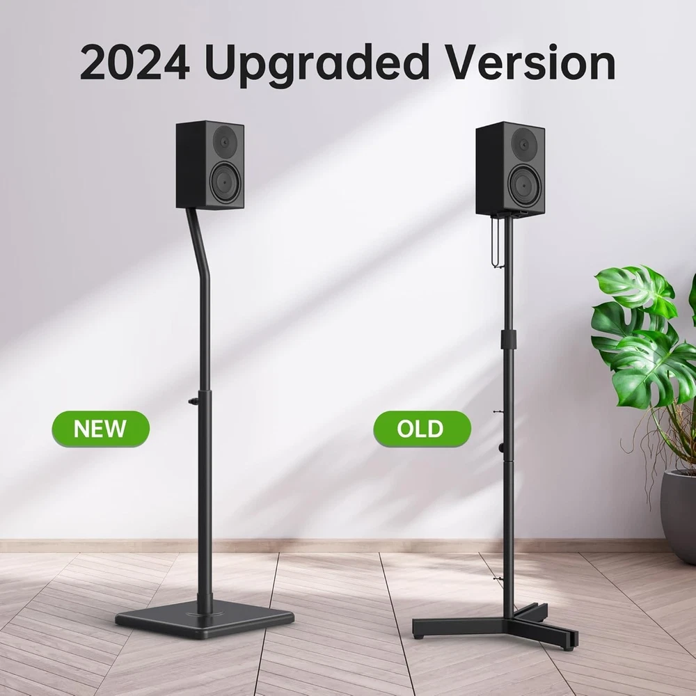 USX MOUNT Universal Speaker Stands, Height Adjustable Extend 30.0" to 39.1" for Satellite Speakers & Small Bookshelf Speakers up to 11 lbs Per Stand, 1 Pair Floor Stands for Sony Bose Polk JBL Yamaha HEIGHT ADJUSTABLE SPEAKER STANDS:This speaker stands use the collar to adjust height from 30.0" to 39.1" to get your sound speakers the desired height and enjoy stereo or surround sound. Placing the bookshelf speakers stands on the appropriate height can also reduce reflections to give you a purer and more clear sound. COMPATIBILITY&MULTI INSTALLATION OPTIONS:The surround sound speakers stand fit back screw hole /key hole.The height 2.7" to fit your various speakers of different sizes with different holes. WARM TIPS: Please make sure there are holes on the back the speaker to lock the screws before purchase. The metric screws came with the stand do not fit for Samsung HW-Q90R. STURDY SQUARE BASE:The floor speaker stands is constructed from high quality steel materials which is sturdy enough and durable. The square base of the rear speaker stands is more stable and the weight capacity up to 11lbs/5kg per stand. No worries about it tipping over. Rubber feet for wooden, cement, tile or other hard floor. If the stand is placed on carpet, install the carpet nail. CONVENIENT TO USE &US Based Customer Support :This speaker stands pair include all the required hardware and easy instructions, you can assemble it within few minutes. The speaker floor stands can be easily to move to your living room, bedroom and study room. Our team will provide pre-sales and after-sales service online or by phone regarding product suitability or installation problems. CABLE MANAGEMENT:The floor speaker stands keep cables clean and organized with internal channel ( 0.6“ W x 1.2” H) for a clean and tidy appearance. Or external velcros in package to help run the cable around the stand tube.