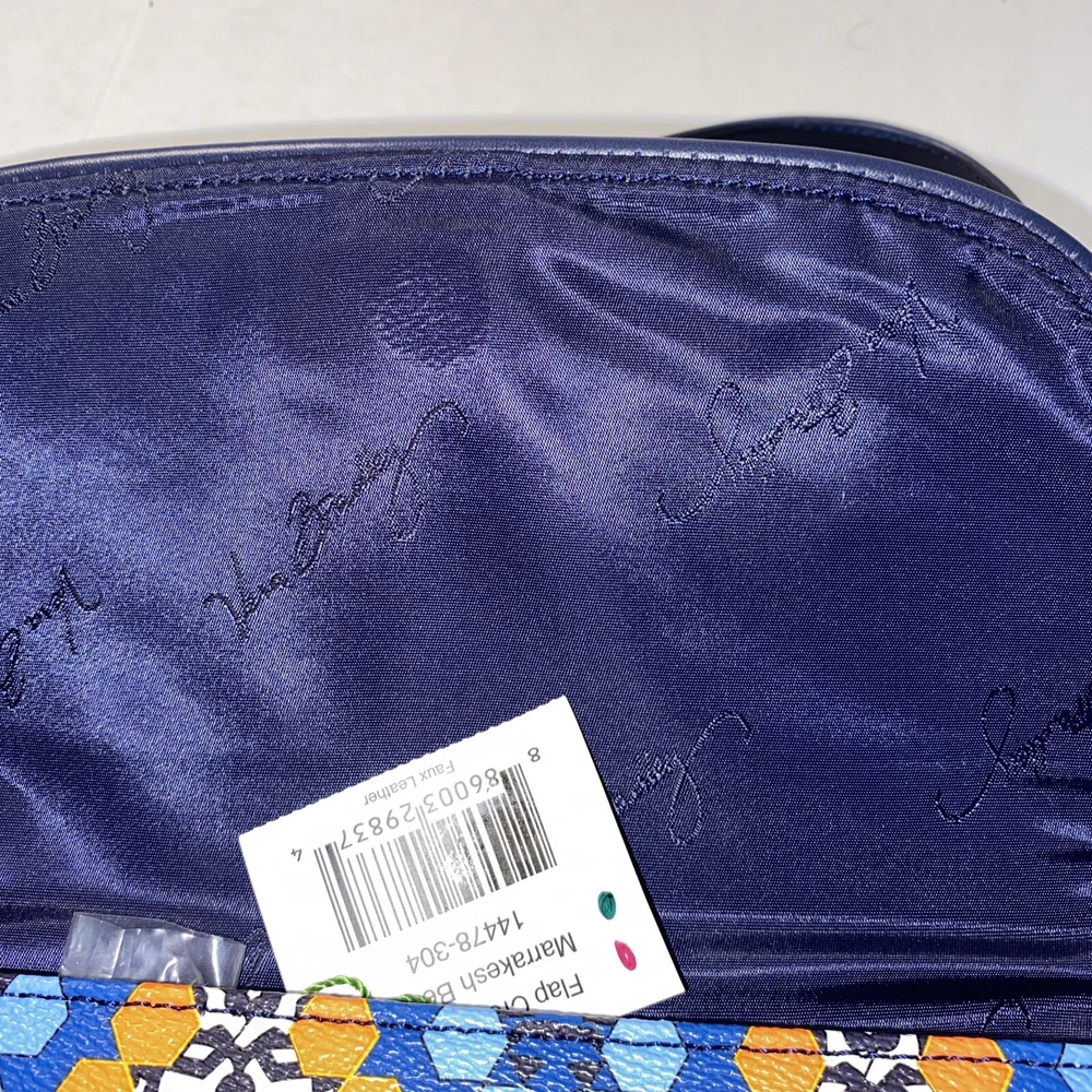 This Vera Bradley Flap Crossbody Bag Purse in Marrakesh Beads pattern is a stylish and functional accessory for women. With a width of 10 inches, height of 7.5 inches, and depth of 2.5 inches, it is a medium-sized bag that is perfect for everyday use. The bag is made of faux leather and features a flap closure, a crossbody strap, and a handle in blue color. The bag is adorned with beautiful beaded accents in a multicolor exterior, which gives it a unique and trendy look. It also comes with a card case, making it a perfect gift for someone special or a treat for yourself. This Flap Crossbody Bag Purse is a must-have for anyone who wants to add a touch of elegance to their daily routine.