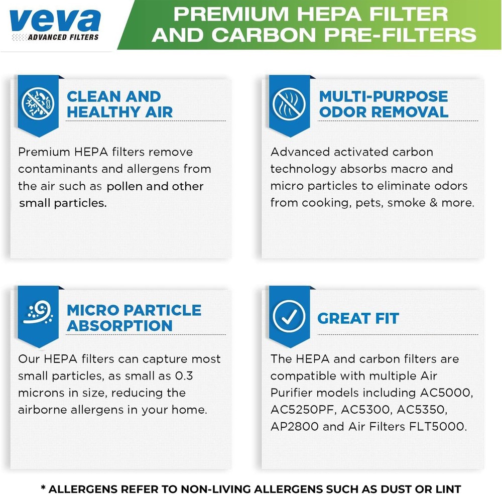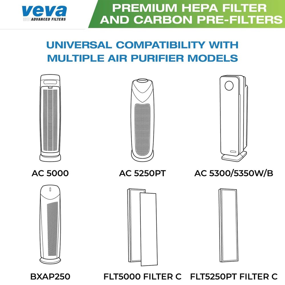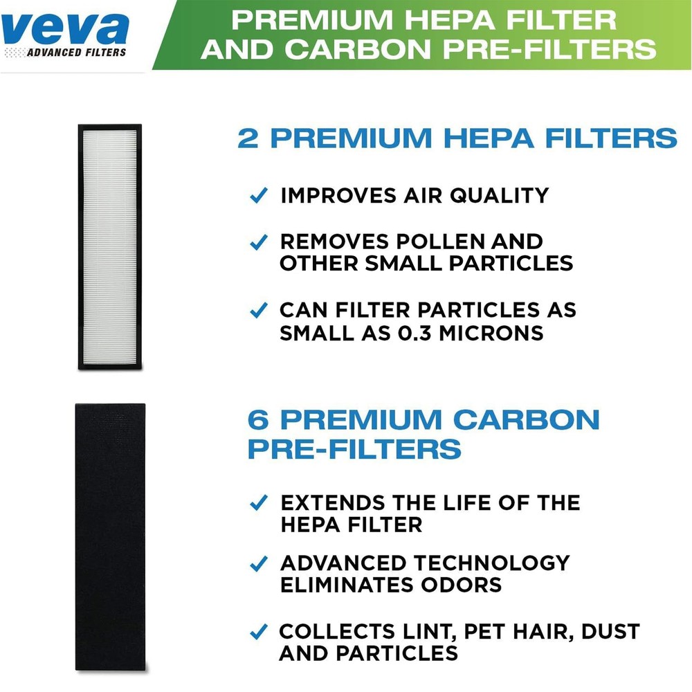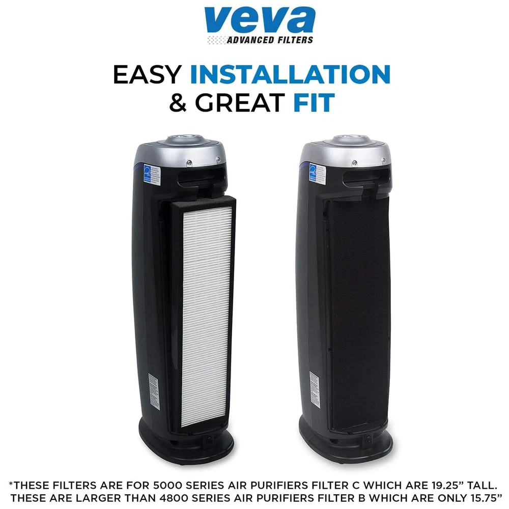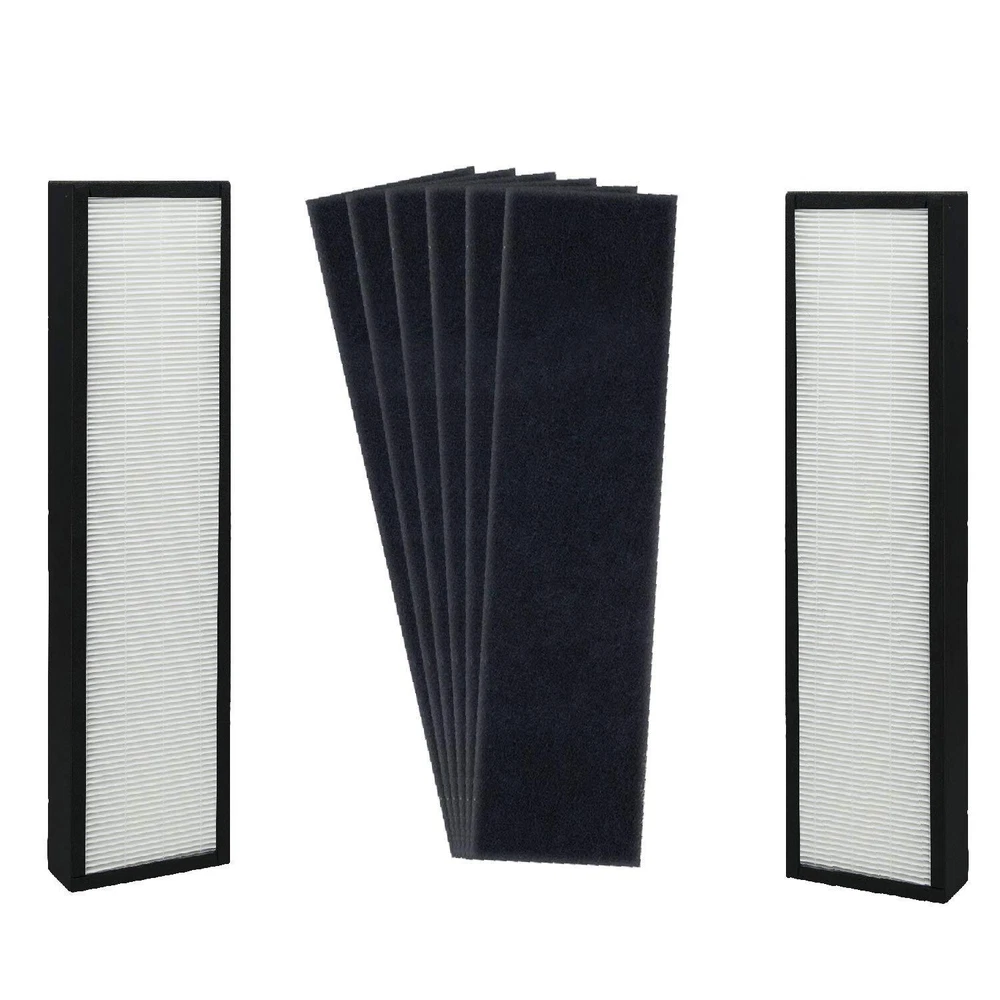 PREMIUM QUALITY - HEPA filters are capable of capturing most dust and non-living allergens as tiny as 0.3 microns to remove pet dander and pollen. UNBEATABLE VALUE - Get 2 HEPA Filters for the price of one with 6 extra Pre-Filters included. Cheap enough so you can simply remove and replace. GREAT FIT- Compatible with GermGuardian Air Purifier Models AC5000 series, AC5250PT, AC5300B, AC5350W, AC5350B, CDAP5500B, PureGuardian Model AP2800CA, Black+Decker BXAP250 and Lowe's Idylis Model IAP-GG-125 with step by step instructions to make installation quick and easy. HEPA Filter Dimensions: H: 19.25” x L: 4.72” x W 1.1” and Pre-Filter Dimensions: H: 19.25” x L: 4.72” x W 0.2” SAY GOODBYE TO ODOR - Activated Charcoal filters help reduce common odor from pets, smoking and cooking. CUSTOMER HAPPINESS: Our responsive customer service team is fully committed to ensuring you have the best experience possible! If you have any questions or concerns, please contact us and we will answer ASAP!