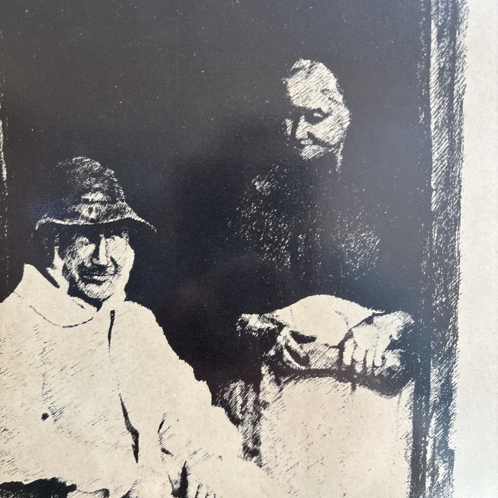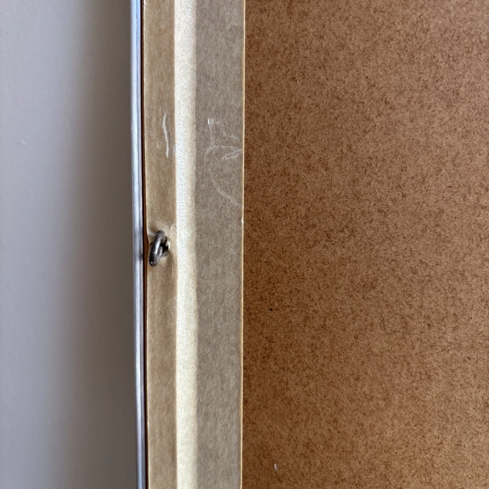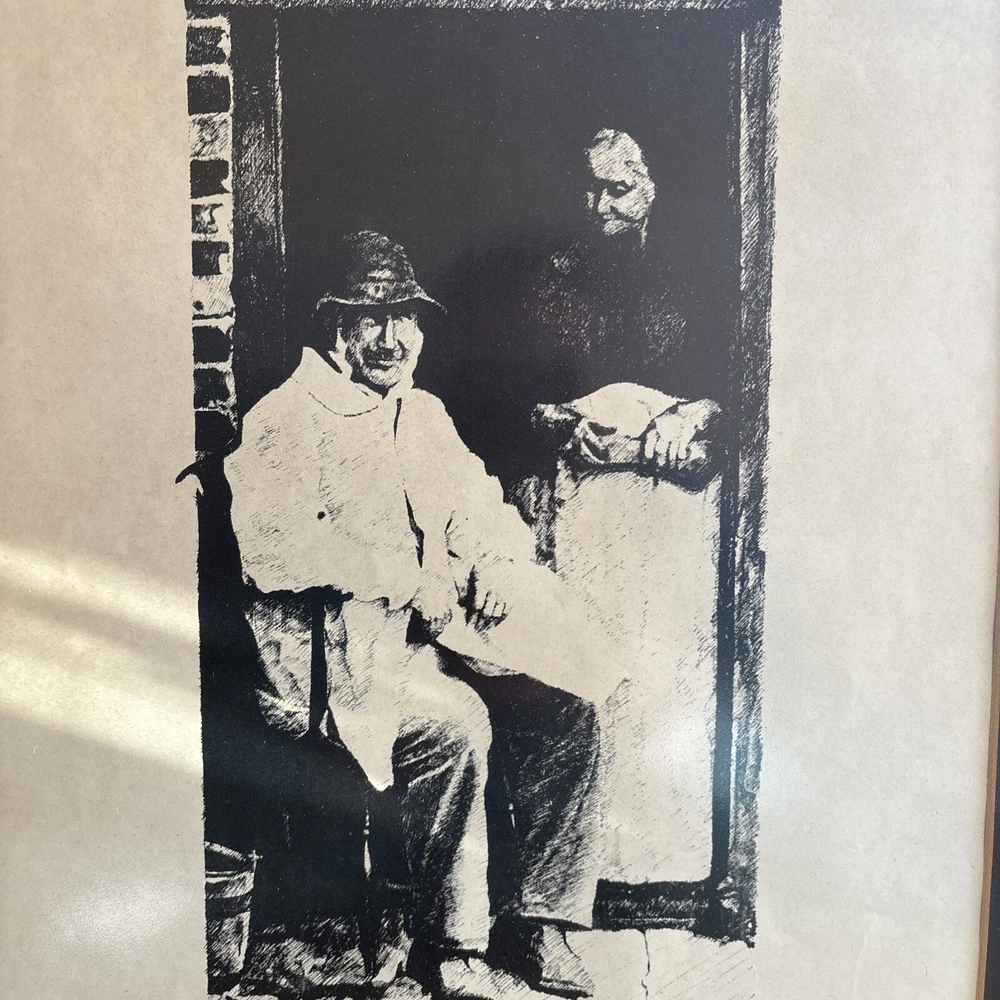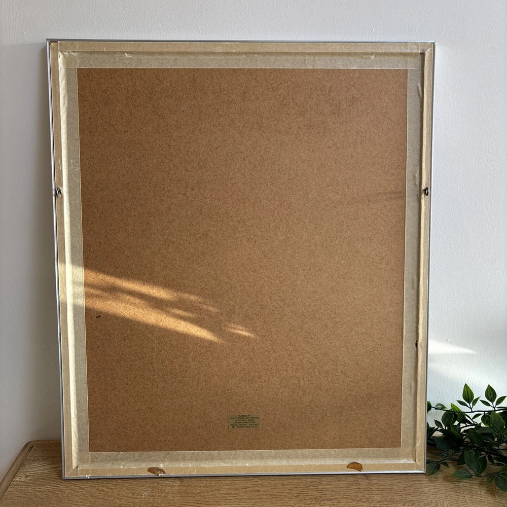 This is a vintage framed print by Jamie Hobson, dated 1974. The artwork is a black-and-white illustration, capturing an intimate and thought-provoking scene with two figures. The striking detail and composition highlight Jamie Hobson's skill as an artist, making this piece a timeless addition to any collection or decor. The artwork is framed with a black mount and a sleek silver frame, perfectly complementing the vintage aesthetic. The frame measures 46 cm wide by 54 cm high , making it a versatile and ideal size for display in various spaces. This print is in excellent vintage condition, with some minor wear to the frame that adds to its charm and authenticity. Details : Artist : Jamie Hobson Year : 1974 Medium : Print Subject : Seated figures in an intimate setting Frame Dimensions : 46 cm wide x 54 cm high Frame : Black mount with silver outer frame Condition : Excellent vintage condition with minor wear on the frame Style : Black-and-white illustration This vintage Jamie Hobson print is ideal for collectors, art enthusiasts, or anyone looking for a unique and characterful piece of vintage decor. We take great care to provide accurate descriptions, and we encourage you to thoroughly review the accompanying photos for a comprehensive understanding of the item's details. If you have any questions or need additional information, please don't hesitate to reach out to us.
