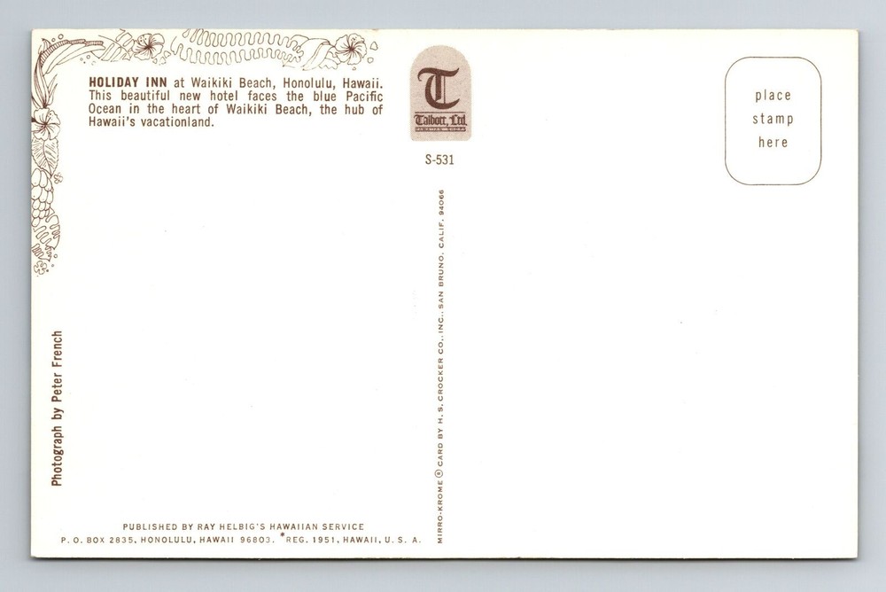 Vintage Holiday Inn Waikiki Beach Postcard Honolulu Hawaii