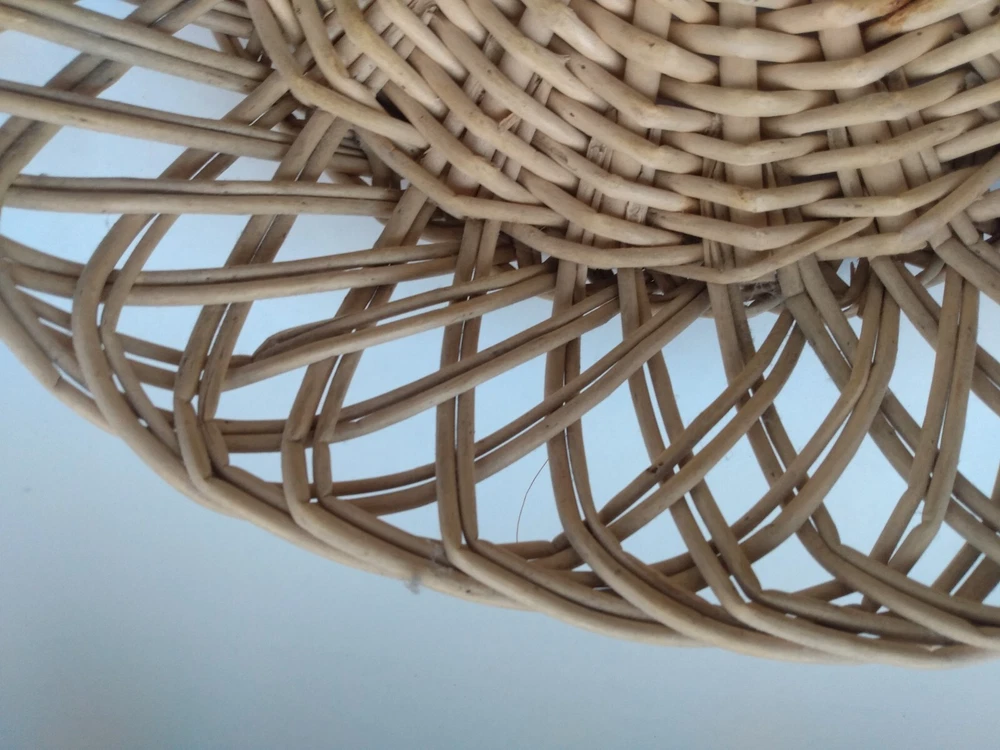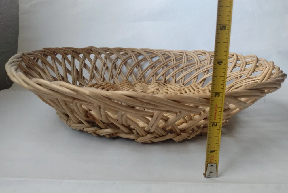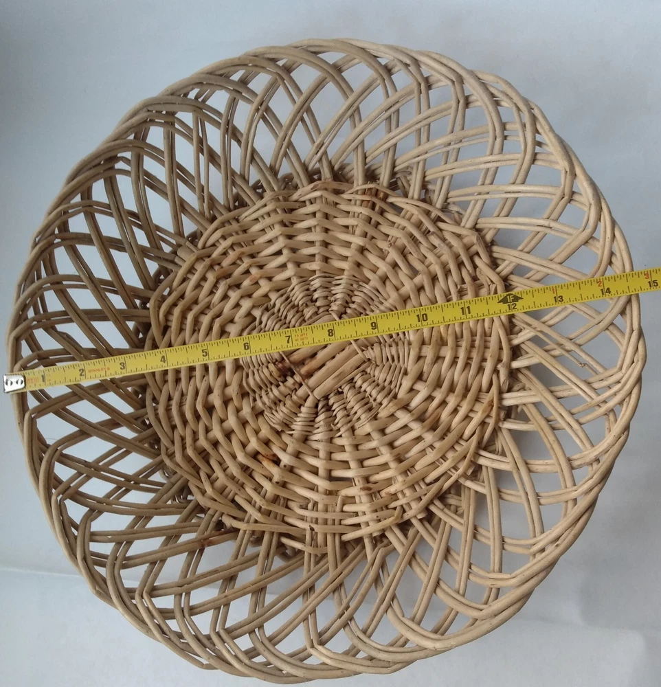 Add a touch of vintage charm to your home decor with this beautiful large round wicker tray. This platter boasts a beautiful beige color and intricate woven rattan design that is both stylish and functional. Measuring large in size, it can be used as a shallow basket to store small items or as a decorative centerpiece to showcase your favorite collectibles. Its unique shape and material make it a perfect addition to any room in your home, and a wonderful gift for those who appreciate the beauty of handmade crafts. This basket is about 3.5 inches tall and an overall diameter of 15 inches. The inner flat portion of the basket has a diameter of 10 inches.
