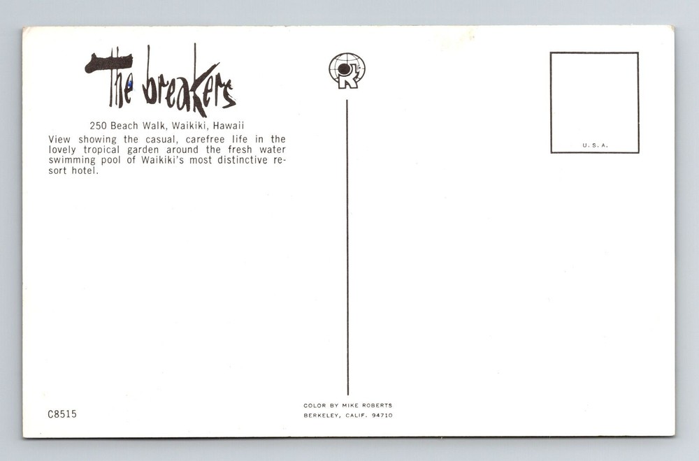 Vintage Waikiki Hawaii Postcard of The Breakers Hotel Pool View