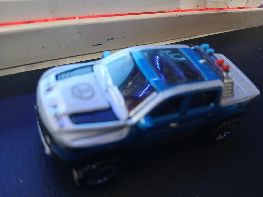Gender: Boys & Girls Material: Diecast Scale: 1:64 Character Family: Cars Vehicle Make: Dodge Customized: No Country/Region of Manufacture: China Color: Blue SIlver Autographed: No Model: Dodge Ram Vehicle Type: Police Vehicle Brand: Matchbox