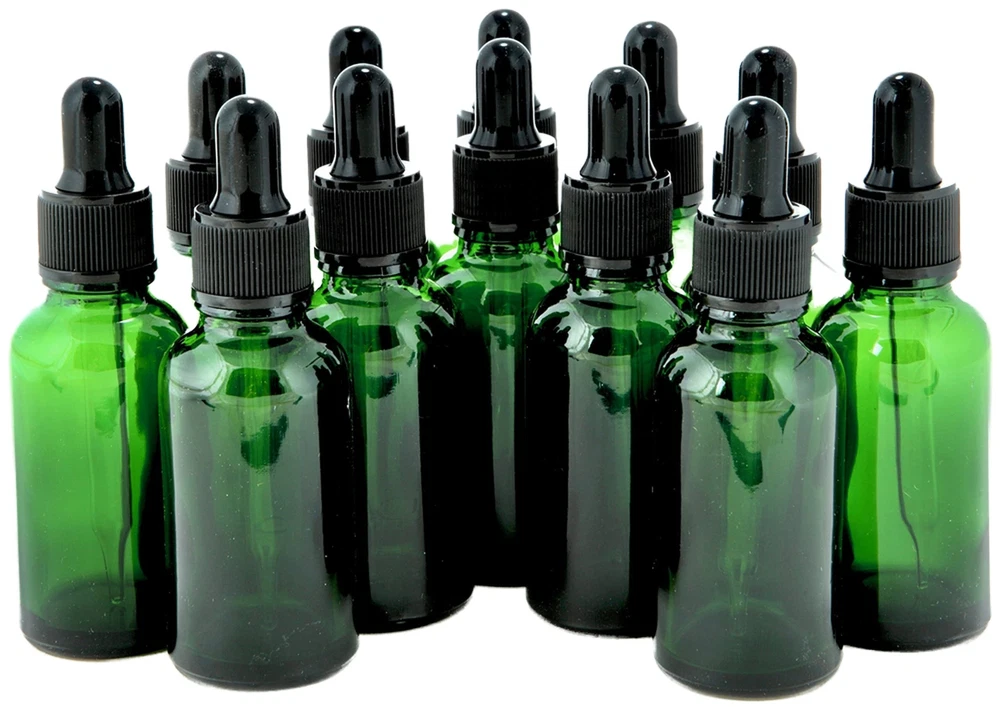 These high quality Green glass bottles with glass eye droppers, are perfect for storing your essential oils, perfumes or colognes. The Green glass provides protection from potentially harmful light and the convenient size makes it perfect for travel. The Eye Droppers allow for the perfect amount of product to be used every time. 12 - 1 oz, Green Glass Bottles, with Glass Droppers Perfect for essential oils, perfume oils, or other liquids. Safe, secure and convenient packaging. Perfect for travel, and conveniently fits in your purse. Green Glass Protects Against Harmful UV Rays