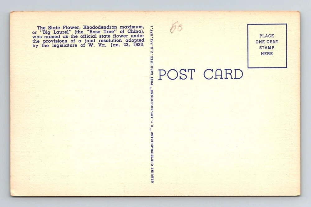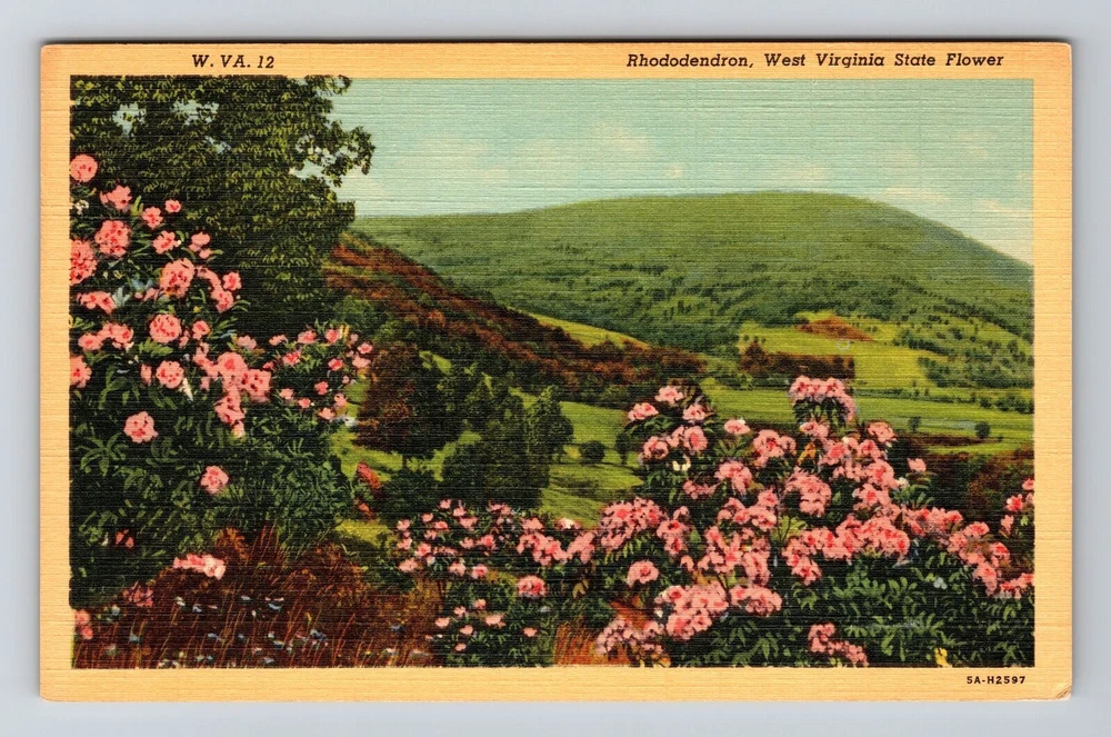 WV-West Virginia, Rhododendron, State Flower, Vintage Postcard