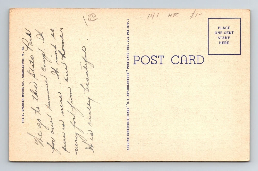 Unit of Sale: Single Unit Country: USA Postage Condition: See Image Original/Licensed Reprint: Original Theme: Cities & Towns Type: Printed (Lithograph) City: West Virginia Region: West Virginia Era: Linen Country/Region of Manufacture: Unknown Subject: Cities & Towns