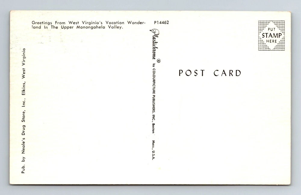 Region: West Virginia Country/Region of Manufacture: United States Country: USA Theme: Cities & Towns Postage Condition: Unposted Unit of Sale: Single Unit Era: Chrome Subject: Cities & Towns Continent: North America City: West Virginia Type: Printed (Lithograph) Original/Licensed Reprint: Original