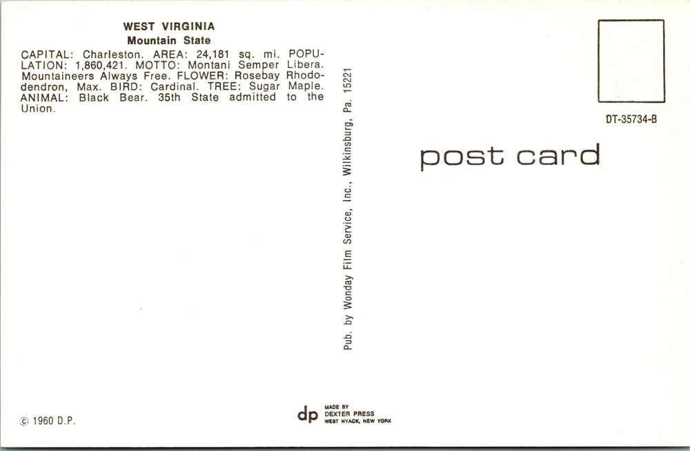 WV-West Virginia, Scenic Map Greetings, Landmark Vintage Postcard