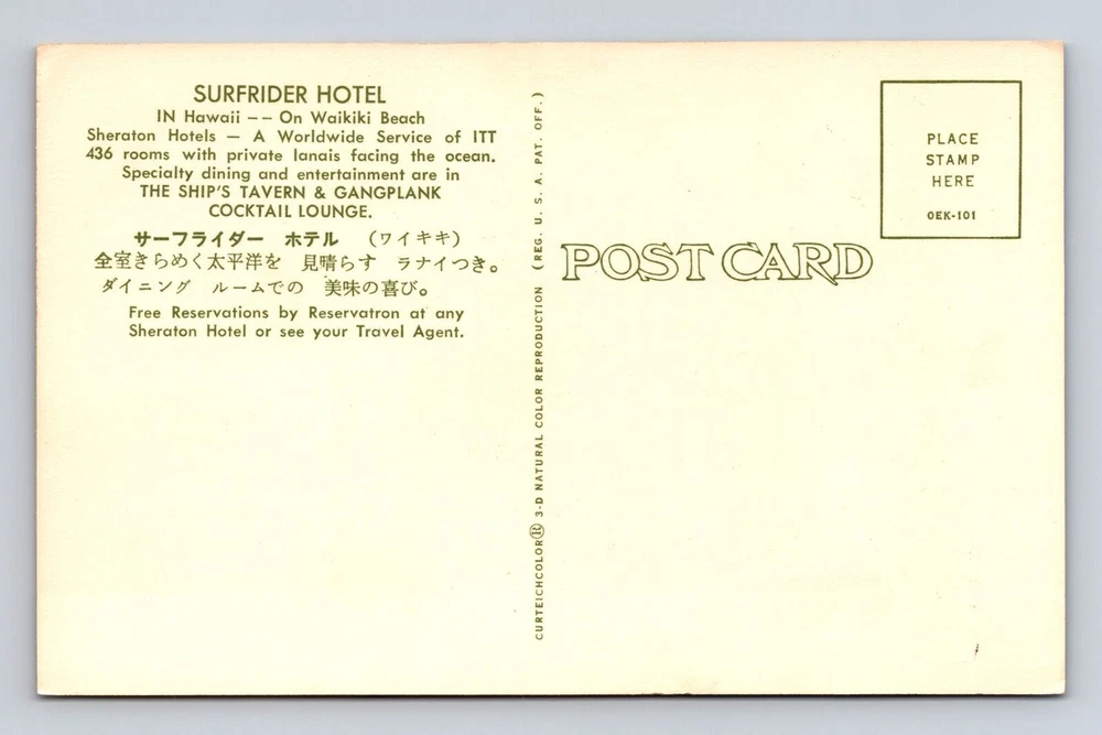 Waikiki HI- Hawaii, Surfrider Hotel, Advertisement, Antique, Vintage Postcard