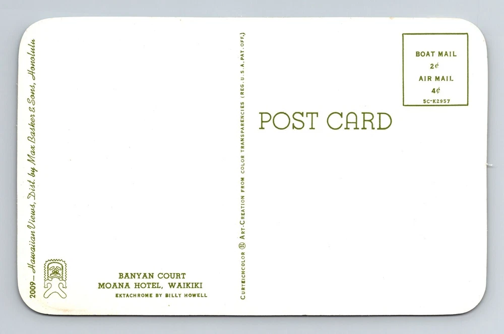 Waikiki HI-Hawaii, Banyan Court, Moana Hotel, Vintage Postcard