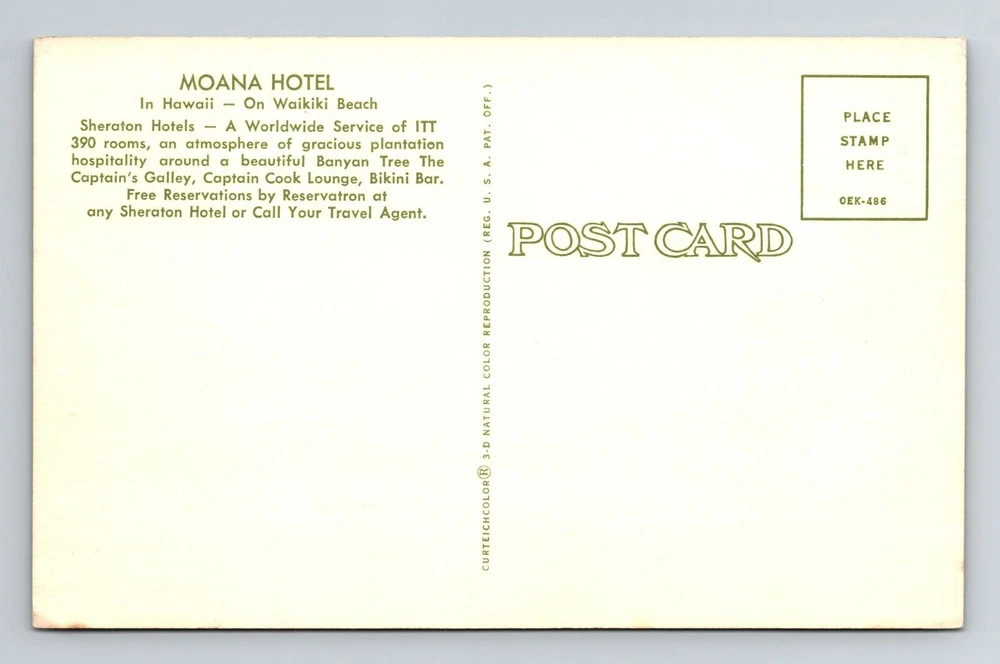 Waikiki HI-Hawaii, Moana Hotel, Scenic Beach View, Vintage Postcard