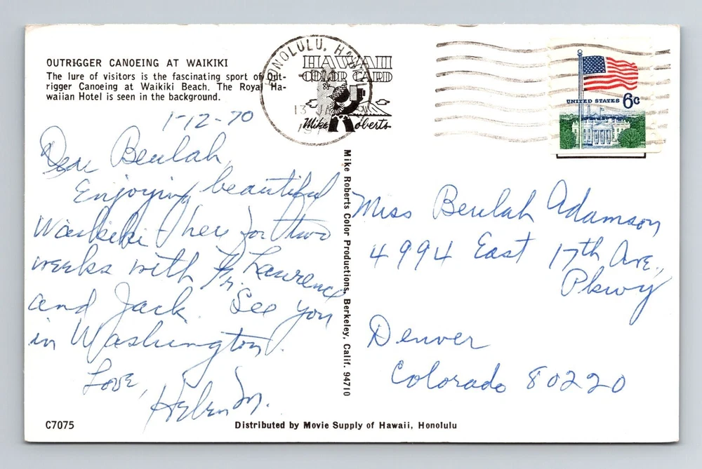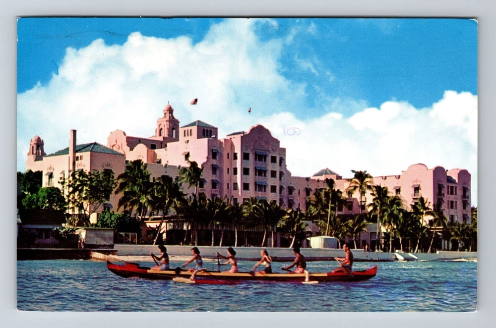 Waikiki HI-Hawaii, Outrigger Canoeing, Scenic View, Vintage Postcard