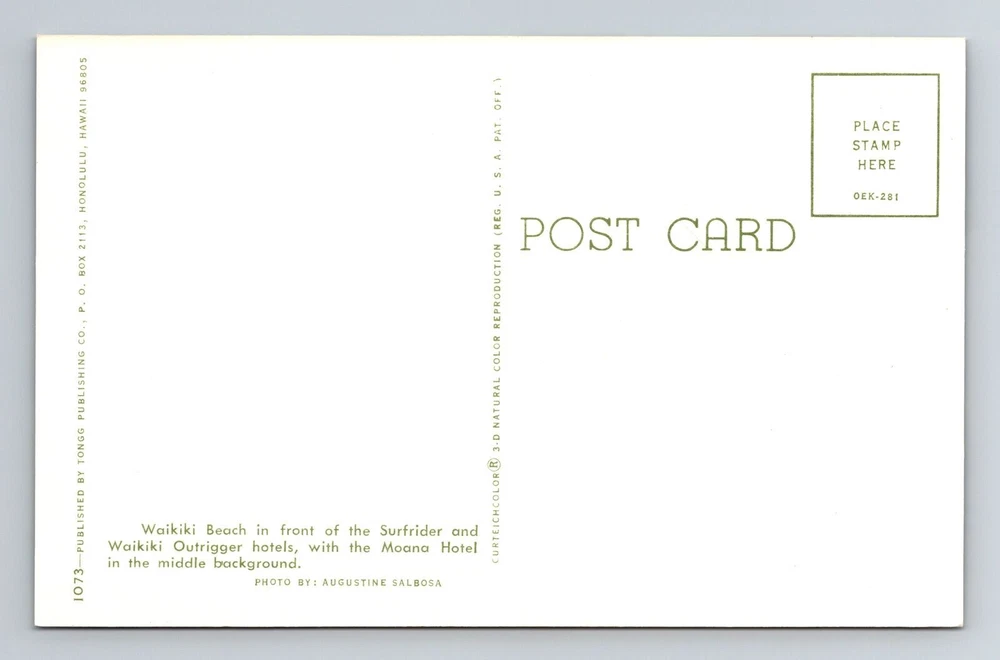 Original/Licensed Reprint: Original Unit of Sale: Single Unit Country: USA Era: Chrome Theme: Cities & Towns Subject: Cities & Towns Region: Hawaii Country/Region of Manufacture: Unknown Type: Printed (Lithograph) Postage Condition: See Image City: Waikiki