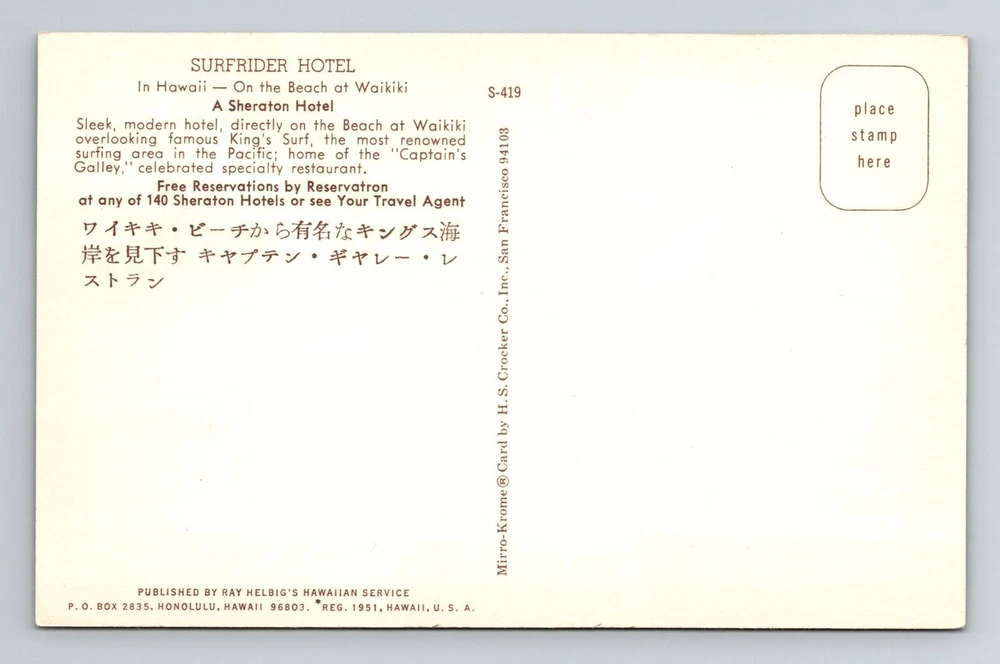 Unit of Sale: Single Unit Region: Hawaii City: Waikiki Postage Condition: See Image Theme: Cities & Towns Subject: Cities & Towns Country: USA Era: Chrome Country/Region of Manufacture: Unknown Original/Licensed Reprint: Original Type: Printed (Lithograph)
