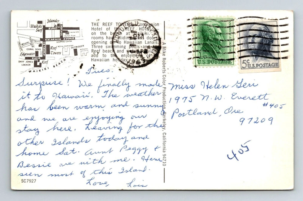 Waikiki HI-Hawaii, The Reef Tower At The Reef Hotel, Outside, Vintage Postcard