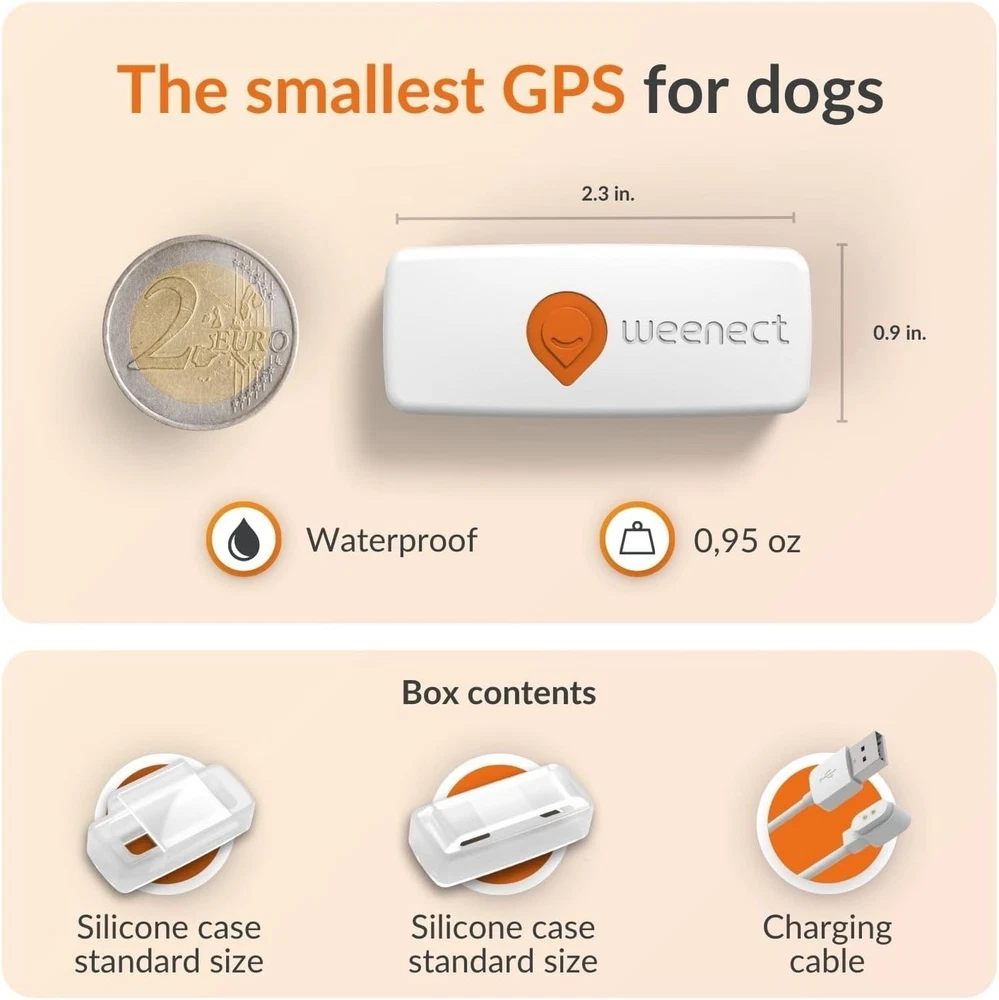 Weenect Dog XS – Real-Time GPS Tracker for Dogs (Smallest Model on the Market) Keep your dog safe and always within reach with the Weenect Dog XS, the world’s smallest GPS tracker designed for dogs. Lightweight, waterproof, and easy to attach to your pet’s collar, it provides accurate live location updates through the Weenect mobile app. ✨ Key Features Real-time GPS tracking via Weenect mobile app Ultra-compact & lightweight – perfect for small dogs Waterproof design, ideal for outdoor activities Alerts & notifications when your dog leaves a safe zone (geo-fencing) Long battery life with easy USB charging Simple collar clip attachment ⚠️ Important – Subscription Required To use the Weenect Dog XS, you must activate a subscription plan with Weenect. The tracker uses a built-in SIM card to connect to the mobile network and send live GPS data to your phone. Without a subscription, the device will not provide real-time tracking. Subscription is billed directly by Weenect and is required to access: Unlimited live GPS tracking Safe zone alerts (geo-fences) Location history and activity tracking Support via iOS and Android app Plans are flexible (monthly, yearly, or multi-year) and start at an affordable rate. Package Includes: Weenect Dog XS GPS Tracker unit Collar attachment clip USB charging cable Quick start guide Condition: Brand new, sealed.