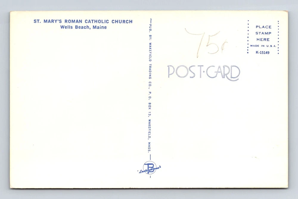 Wells Beach ME-Maine, St Mary's Roman Catholic Church, Vintage Postcard