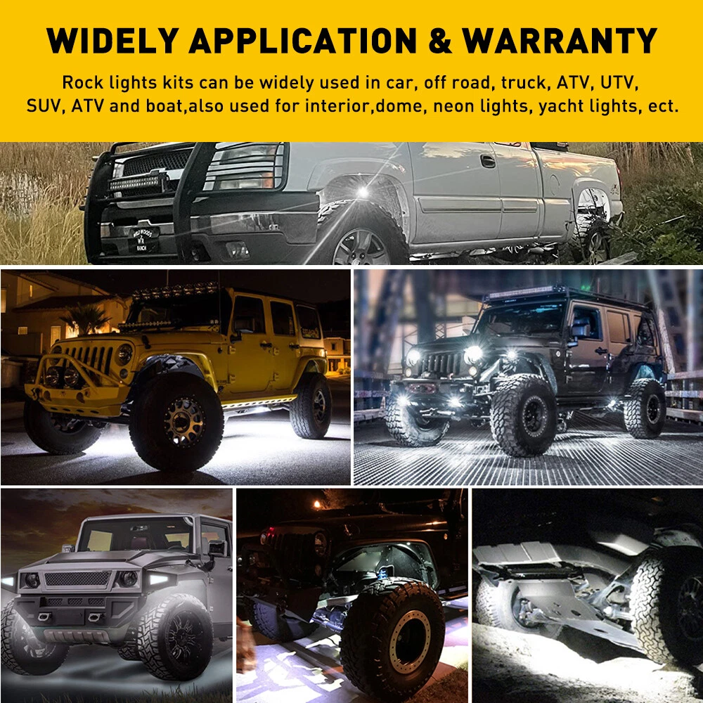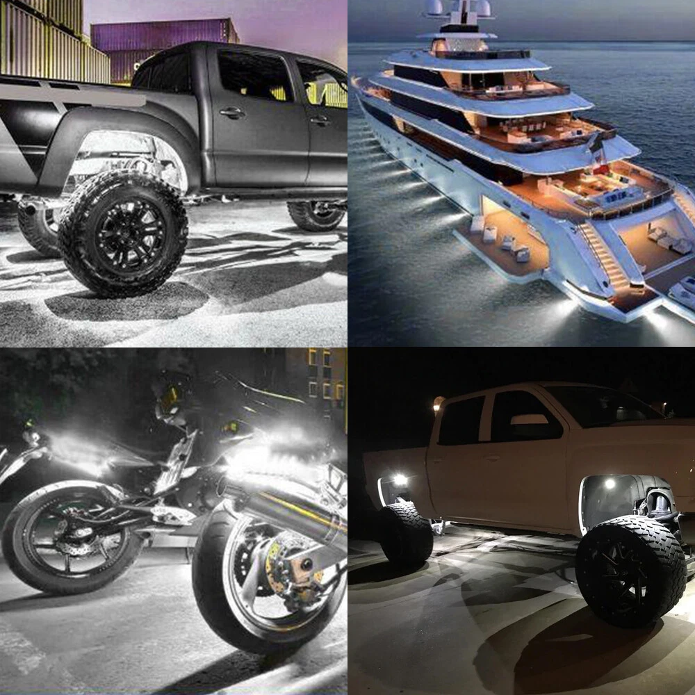 Specification: Suitable models: Universal, including cars, SUVs, JEEP, truck, etc Connection mode: red wire to the positive pole, black wire to the negative pole Placement on vehicle:Under,Fender,Wheel eyebrow, grill,wheel arch etc. LED Quantity: 9 LED Per Light Voltage: DC 10V-14V Material: Diecast Aluminum Housing Color: White Service life: 50000+ hours Waterproof:IP68 Housing color:Black Features: *Brilliant brightless: High intensity chip to light up the entire under car. *Wateproof design: High waterproof rating (IP68)with long service life. White 8 LED Lamp Pods Rock Underbody for Lights JEEP Offroad Truck ATV UTV Boats Specification: Suitable models: Universal, including cars, SUVs, JEEP, truck, etc Connection mode: red wire to the positive pole, black wire to the negative pole Placement on vehicle:Under,Fender,Wheel eyebrow, grill,wheel arch etc. LED Quantity: 9 LED Per Light Voltage: DC 10V-14V Material: Diecast Aluminum Housing Color: White Service life: 50000+ hours Waterproof:IP68 Housing color:Black Features: *Brilliant brightless: High intensity chip to light up the entire under car. *Wateproof design: High waterproof rating (IP68)with long service life. *Universal Application: This LED rock lights widely fit for JEEP, Rock crawlers, rock bouncers, off-road, truck, UTV, ATV, SUV, RV, boat, golf cart, tow vehicles, Camp trailer trailers, trikes, street rods, drifters, low riders, racers, etc *DIY Style: Mini design makes the rock lights easy to mount anywhere you want. Perfect for car lights, off-road lights, truck bed lights, van lights, camp trailer lights, tow vehicles lights, boat lights, etc. Packaging included: 8 PCS LED Rock Lights 1 SET Installation Kit Item Specifics Features CANbus Compatible Bulb Fitment Code C5W Manufacturer Warranty One Year Warranty Application 2 for trikes, street rods, drifters, low riders, racers, etc. MPN Does Not Apply Lifetime 50,000 Hours OE/OEM Part Number AUXITOLED Voltage DC 10V~14V Fitment Type Performance/Custom Performance Part Yes Lighting Technology LED Suitable For Accessory Light Size 2 Inch Lumens 6000 lm Display title in Boldface off Material Diecast Aluminum Housing To Fit underbody underglow wheel well decoration lights Interchange Part Number Widely used under vehicles, interior light, Grill lights, card li Color Temperature 6500K Light Color White Number of Bulbs 8 Placement on Vehicle Under, Fender, Wheel Eyebrow, Grill, Wheel Arch, Mudgua, Front, R Wattage 9W Housing Color Black Application for JEEP, Rock crawlers, rock bouncers, off-road, truck,UTV, ATV Waterproof Rate IP67 Application 1 for SUV, RV, boat, golf cart, tow vehicles, Camp trailer trailers Manufacturer Part Number Underbody Light Brand Unbranded Bulb Life Hours Up to 30,000 Hours Type Rock Light UPC 608374287890 Bulb Life Hours Up to 30,000 Hours FAQ ♥ If you have a decoding problem or any other problems, please contact us first, we will help you with it. We will reply you within 24 hours in working days. I'm a new seller, thanks a lot for your trust and convince! I will serve you with all my heart. ♥ Q1: Will this bulb fit my vehicle? A: We can match almost any vehicle to one of our bulb sizes. eBay only lets us include some vehicle fitments per listing, but if your vehicle does not show up on the compatibility table at the top of our listings, welcome you to contact us for free consulation before purchasing a product. Q2: My item has not arrived, what's taking so long? A: Sometimes items take longer than expected, especially if it’s going far or to rural area. Check with your post office to see if your item has been held up. Sometimes Royal Mail will not update a tracking number until it has arrived at its destination. If your item still don't arrive after a few days, let us know so we can double check for you and help solve it asap. Q3: My bulbs won't fit, help! A: Special bulb holder may be required. See if you can take the holder from the stock bulb. If not, let us know. The bulb size may be wrong, double check the item you received with the item you ordered. Do you have an aftermarket lighting housing? These may not be perfectly fitted for aftermarket bulbs and will require some manual modifications. Q4: Neither side lighting up? Both sides flicker, hyper flash, or work inconsistantly. A:Check the light fuses, and then check the ballast plugs to insure correct installation. If this doesn't work, there may be a voltage problem with the vehicle. You probably just need a relay or capacitor. Even though some bulbs are builtin resistors, they may still need a decoder. Pay & Ship (1). We gladly accepts payment via PayPal, We will ship your item(s) within 24 hours. (2). Before payment, please keep the consistency of Paypal address and ebay address. (3). Quantity orders are welcome! Returns (1). We offer 60 days free return policy. Please contact us within 60 days from the date you receive your order if you have any issues with the product or want return. Refund will be send after we got your resend package. (2). All returned items should be in the original packaging , return tracking information should be provided . Contact Us (1).Negative feedback will not help resolve any problems you have, please contact us via eBay messages before leaving negative feedback , our customer service will make best effort to help you with the issues. (2).We maintain high standards of excellenceand strive for 100% customer satisfaction! Feedback is very important to us. We request that you contact us immediately before you give us neutral or negative feedback, so that we can satisfactorily address your concerns. About us We're professional in car and motorcycle accessories, especially in LED bulbs. We have our own factory and R&D team. Our belief is to sell top quality items that fit your car and serve you with our heart. Anything please feel free to contact us! Our customer service is very responsibility. Come and follow us! DESCRIPTION NEW ARRIVED HOT SALE CONTACT US 