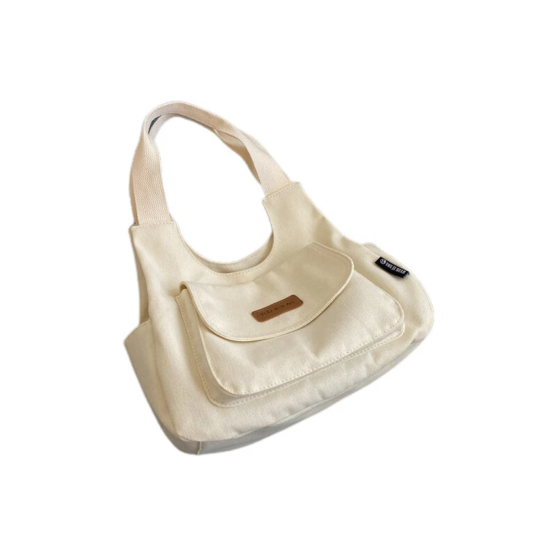 Color: Brown, Dark Blue, White Material: Canvas Bag style: Shoulder bag Lining: Polyester Opening method: Zipper Applicable scenarios: daily matching, commuting to work, students attending classes Package included:1 x Canvas Bag