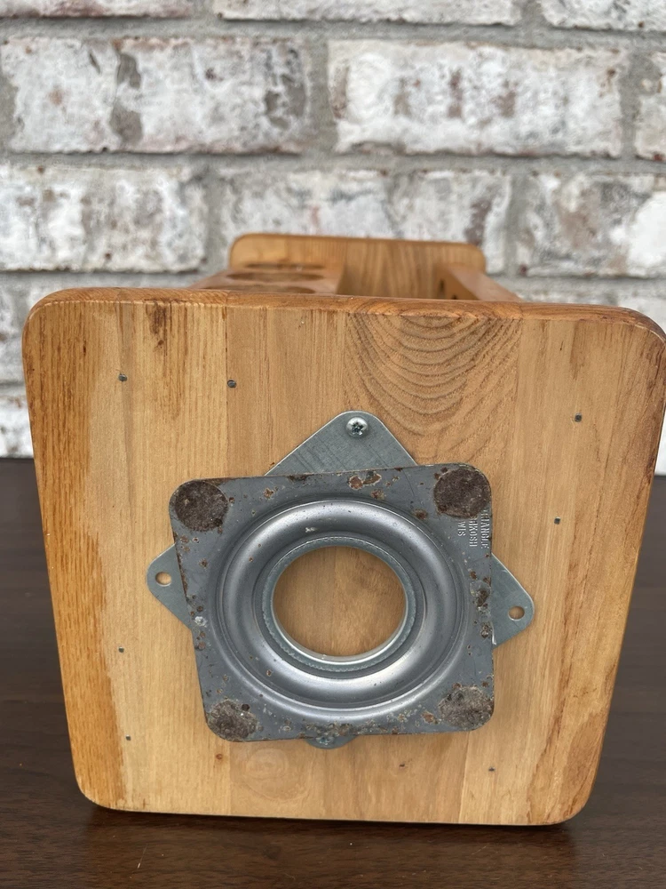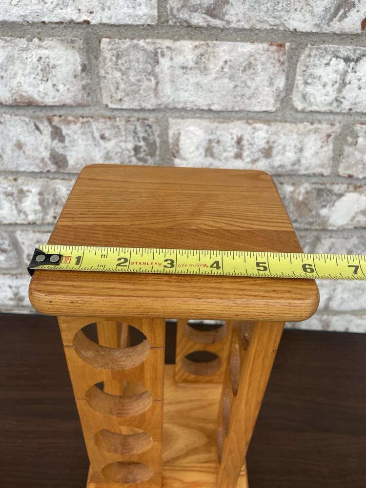 Wooden Rotating Spice Rack 16 Holes For Spice Jars 11.5”x6” Jars Not Included. Condition is Used. Shipped with USPS Ground Advantage.