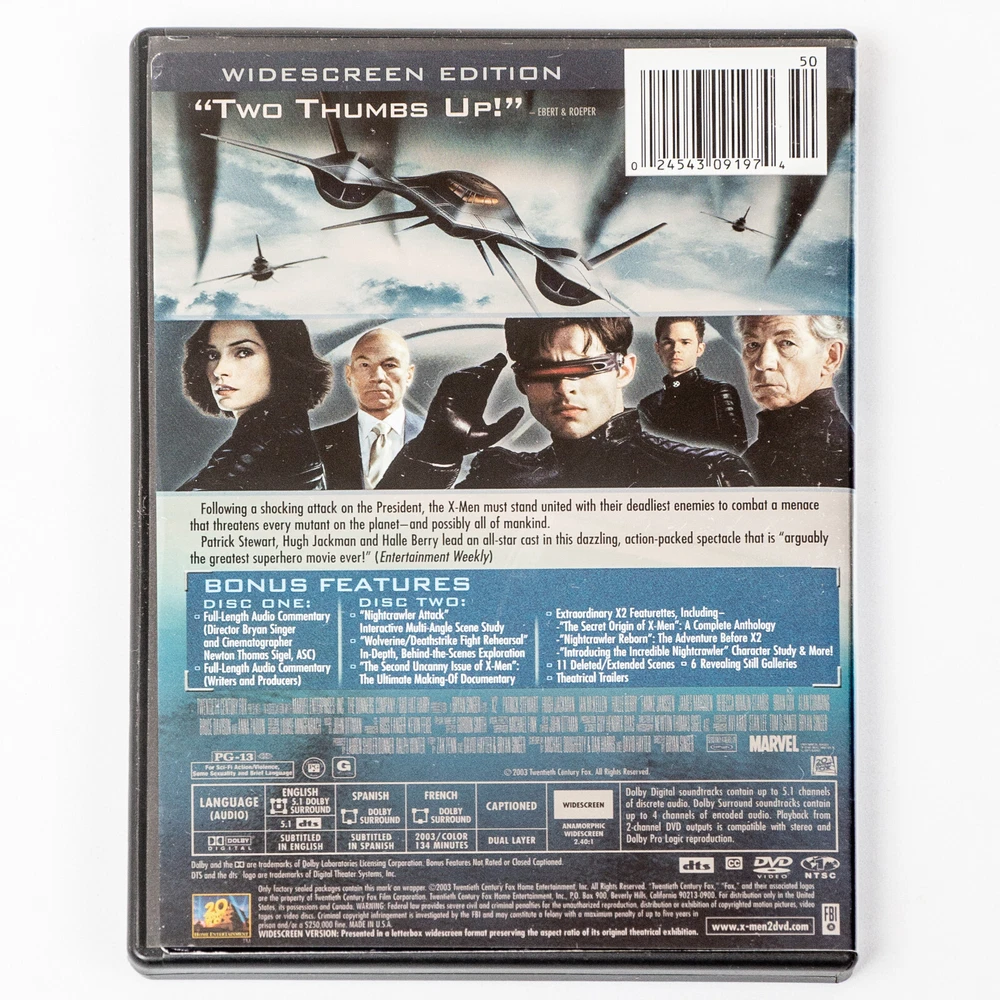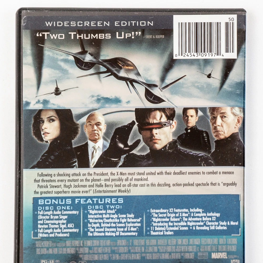 X2: X-Men United / X-Men 2 (Two-Disc Widescreen Edition) - DVD - VERY GOOD Get ready for thrilling action, high-stakes drama, and unforgettable mutant powers with X2: X-Men United , the acclaimed sequel that expands the X-Men universe with deeper storylines and intense battles. The X-Men face a new threat that brings allies and enemies together in a fight for survival, making this film a must-watch for superhero fans. This opened DVD is in very good condition, perfect for anyone looking to dive into one of Marvel's classic films. Why You’ll Love It: All-Star Cast : With returning favorites like Hugh Jackman as Wolverine, Patrick Stewart as Professor X, and Ian McKellen as Magneto, the cast delivers powerful performances that bring each character to life. High-Stakes Plot : As the X-Men join forces with unlikely allies to confront a common enemy, the film delivers both thrilling action and emotional depth. Spectacular Action Scenes : From Nightcrawler’s incredible White House attack to Wolverine’s intense battles, X2 raises the bar on superhero action sequences. Perfect for Marvel Fans : Widely regarded as one of the best entries in the X-Men series, X2 combines gripping storytelling with unforgettable characters, making it a must-have for any Marvel collection. Condition : This DVD is opened but in very good condition . The disc has been fully tested to ensure quality playback, and the original case shows only minimal signs of wear. An essential addition for fans of superhero films and action-packed adventures, X2: X-Men United promises excitement from start to finish. Feel free to reach out with any questions. Ships fast and securely for your next action-filled movie night!