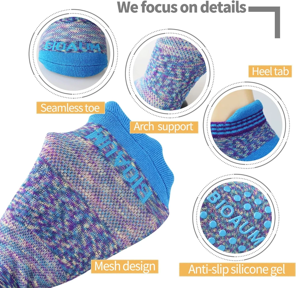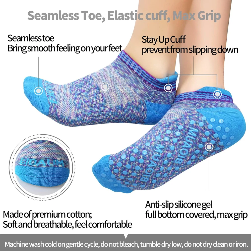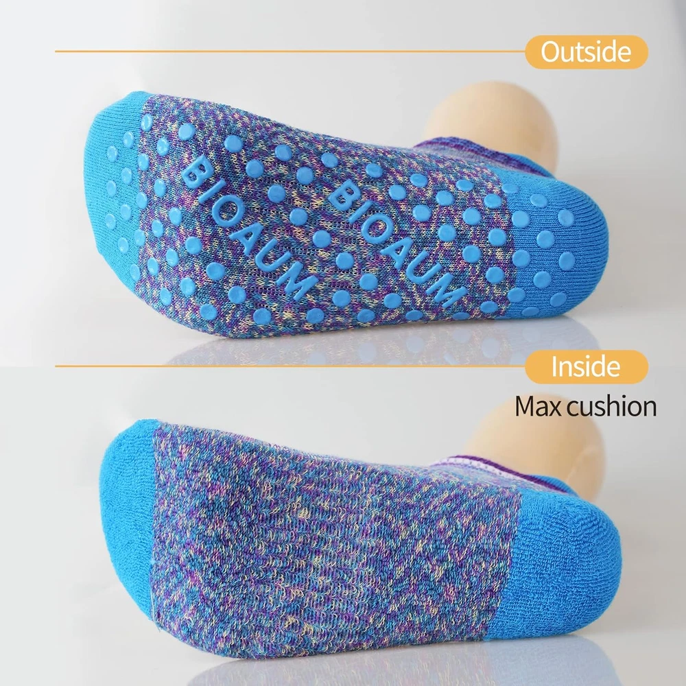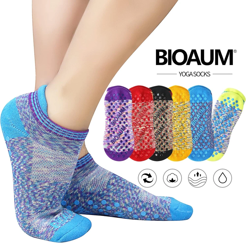 Yoga Socks for Women - 6 Pairs Cotton Cushion Non Slip Grip Slipper Pilates Hosp