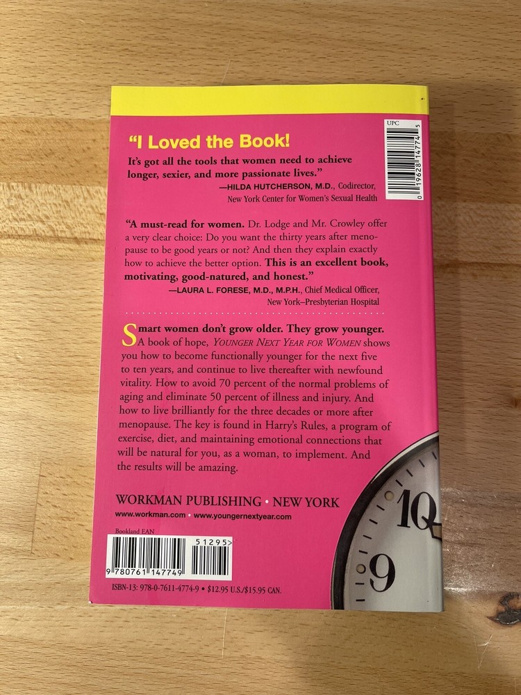 Special Attributes:1st Edition, Dust JacketBook Series:Younger Next Year Ser.Number of Pages:352 PagesIllustrator:YesBook Title:Younger Next Year for Women : Live like You're 50-Strong, FIT, Sexy-Until You're 80 and BeyondItem Width:6.2 inItem Weight:27.1 OzGenre:Family & Relationships, Health & Fitness, MedicalISBN:9780761140733Author:Henrys. Lodge, Chris CrowleyPublisher:Workman Publishing Company, IncorporatedItem Length:9.2 ingtin13:9780761140733Format:HardcoverTopic:Women's Health, Life Stages / Later Years, Healthy Living, Longevity, GeriatricsNarrative Type:NonfictionSubjects:Health, Treatments & MedicinePublication Year:2005Item Height:1.5 inSeries:Younger Next YearLanguage:English